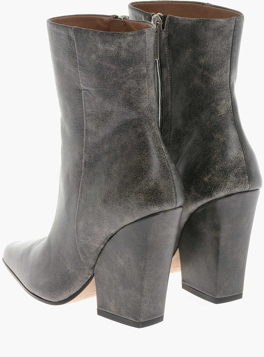 Leather Jane Ankle Boots With Point Toe 10,5Cm