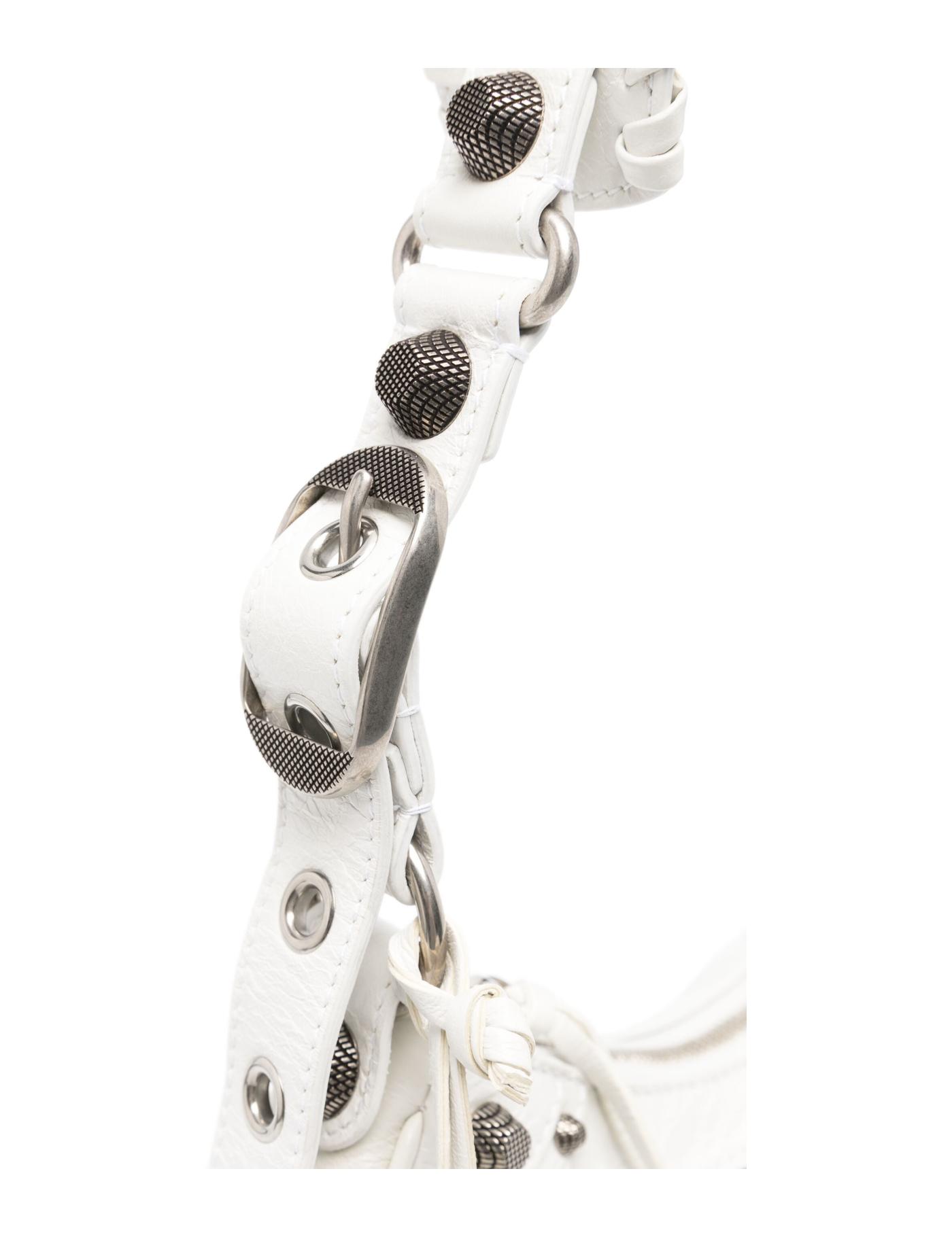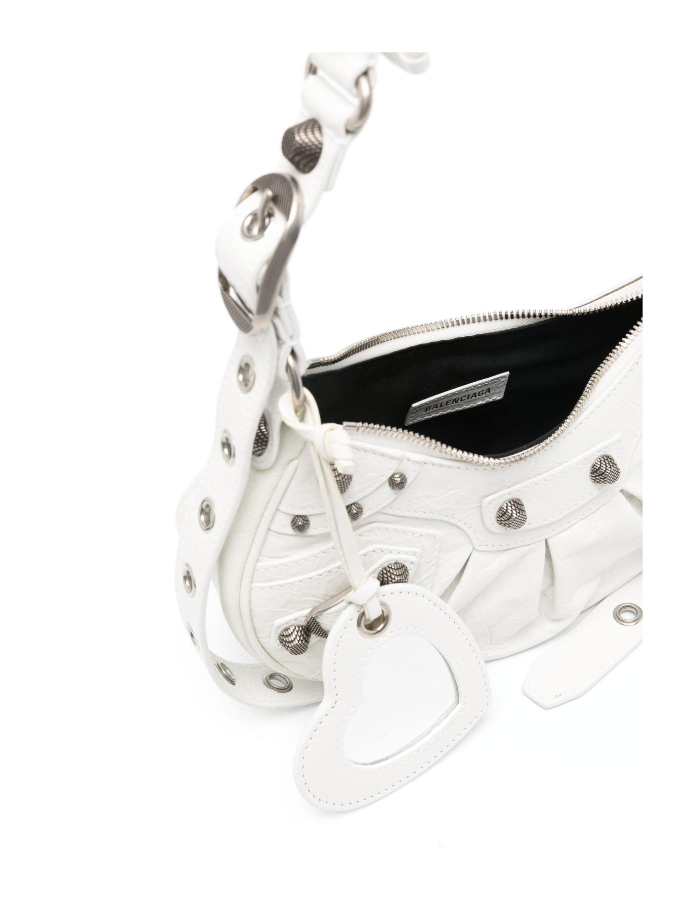 Balenciaga's Le Cagole shoulder bag is inspired by the brand's signature moto-inspired styles. This XS iteration is accented with tough silver-tone studs that trace the curved silhouette. The heart-shaped mirror tag is handy for touch-ups on the go.