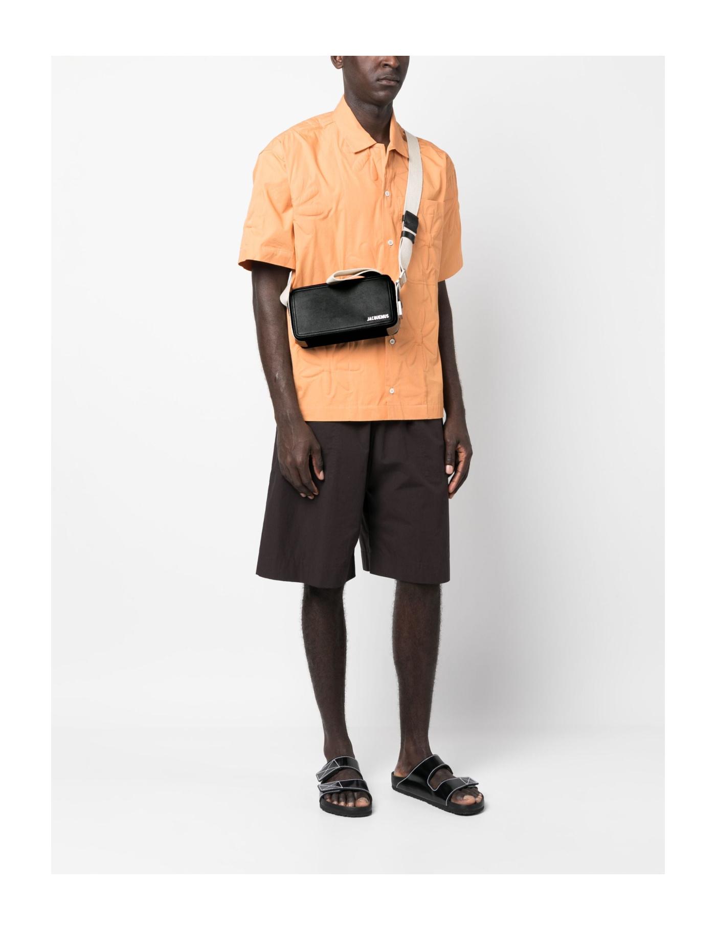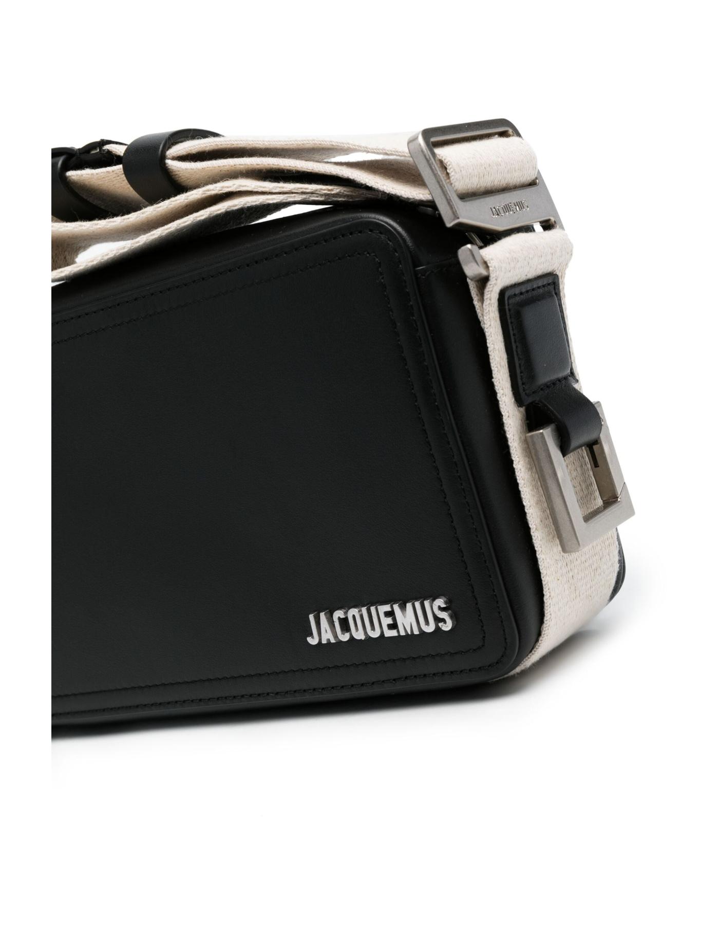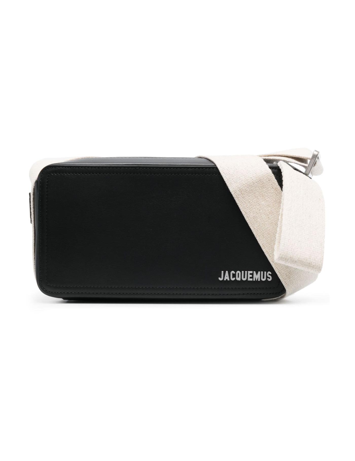 - Le Cuerda horizontal leather bag from Jacquemus featuring black, leather, logo plaque, silver-tone hardware, adjustable shoulder strap, rear patch pocket, top zip fastening, main compartment, cotton lining, internal logo patch and engraved lobster clip.