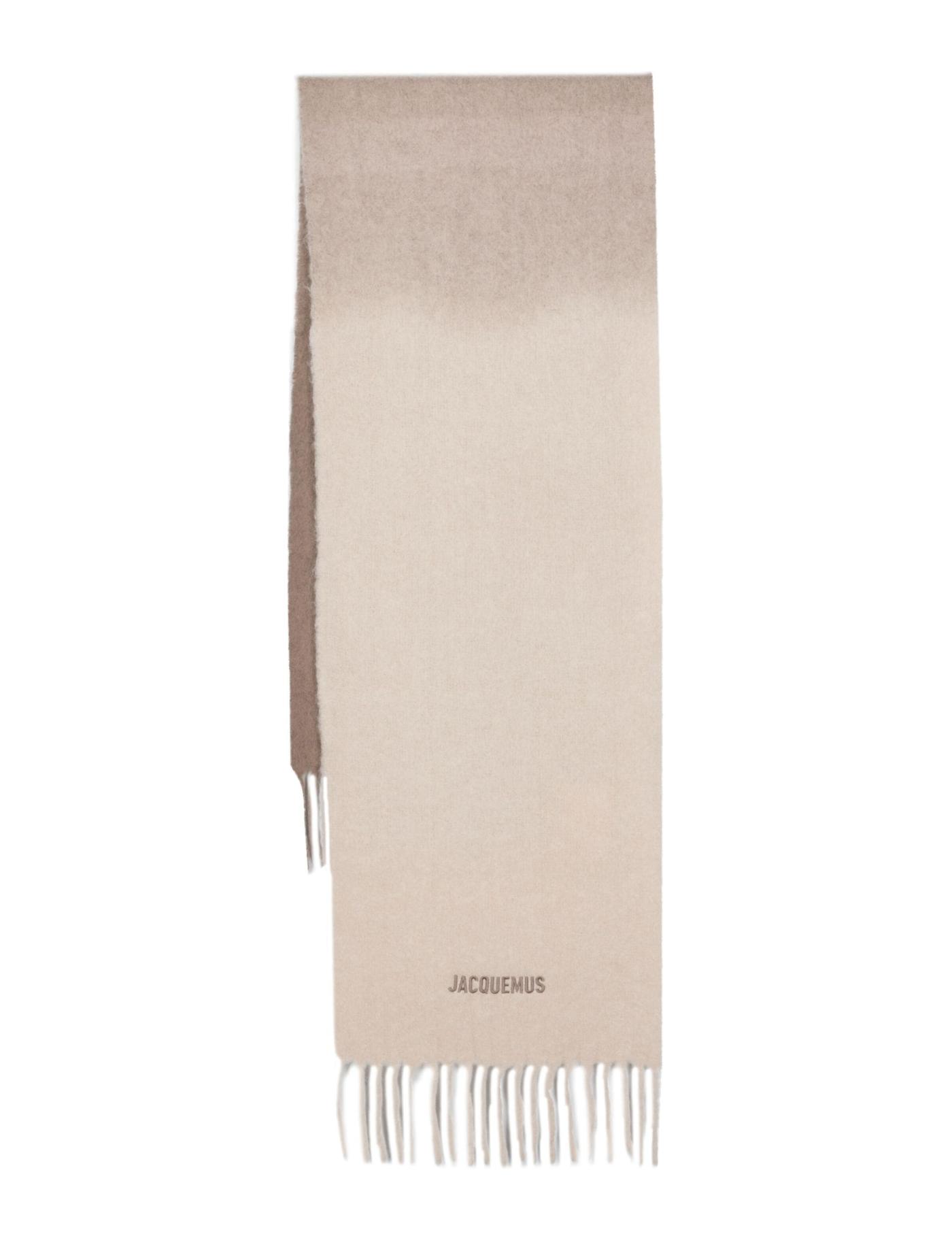 Crafted from a soft alpaca wool blend, this scarf from Jacquemus is decorated with a gradient effect in a beige and taupe colourway. The embroidered logo offers the finishing touch for a recognisable look.