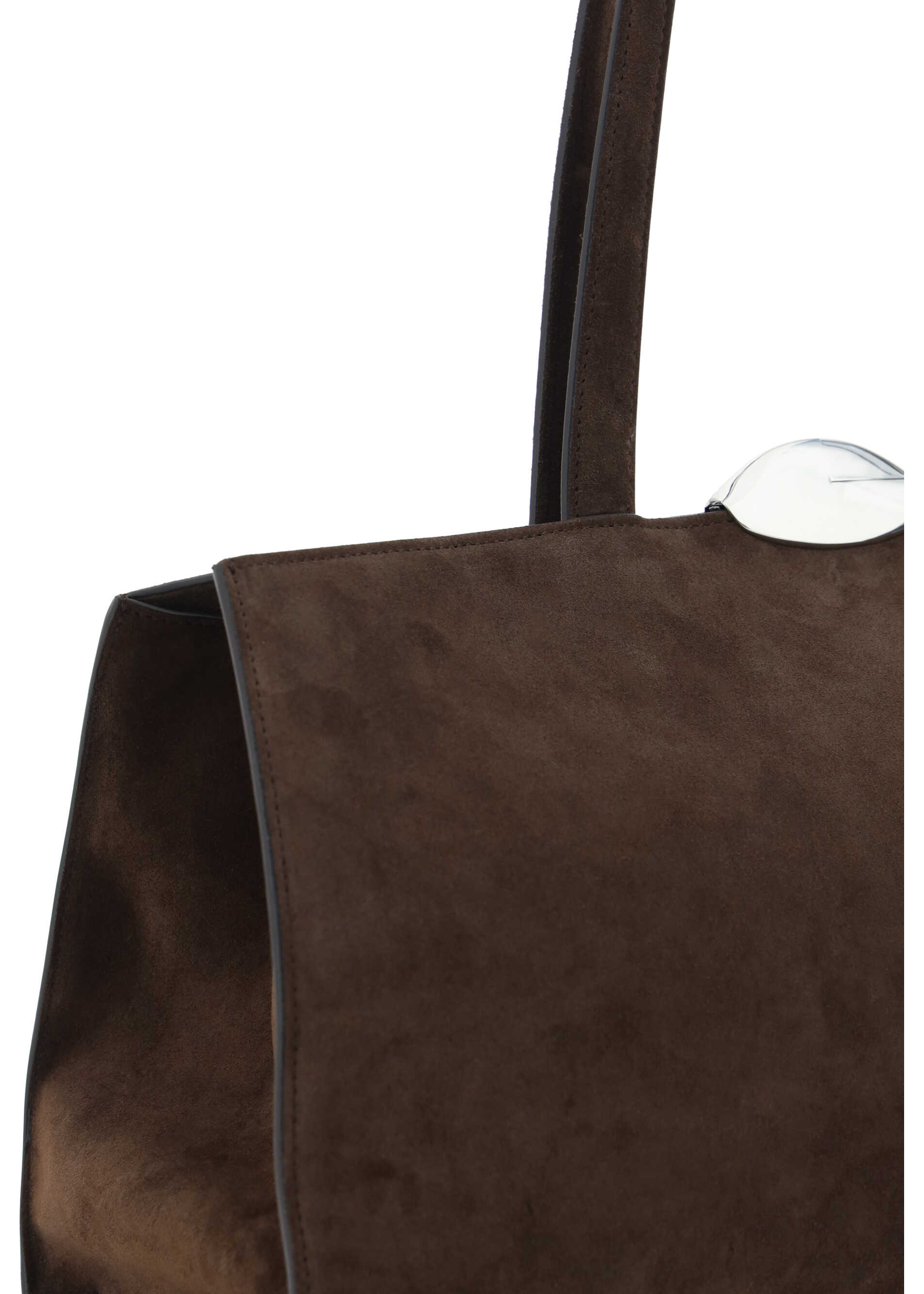 Leather Serena Shoulder Bag by Benedetta Bruzziches, suede effect design, two flat top handles, top metal clasp, external patch pocket on back, single compartment.
