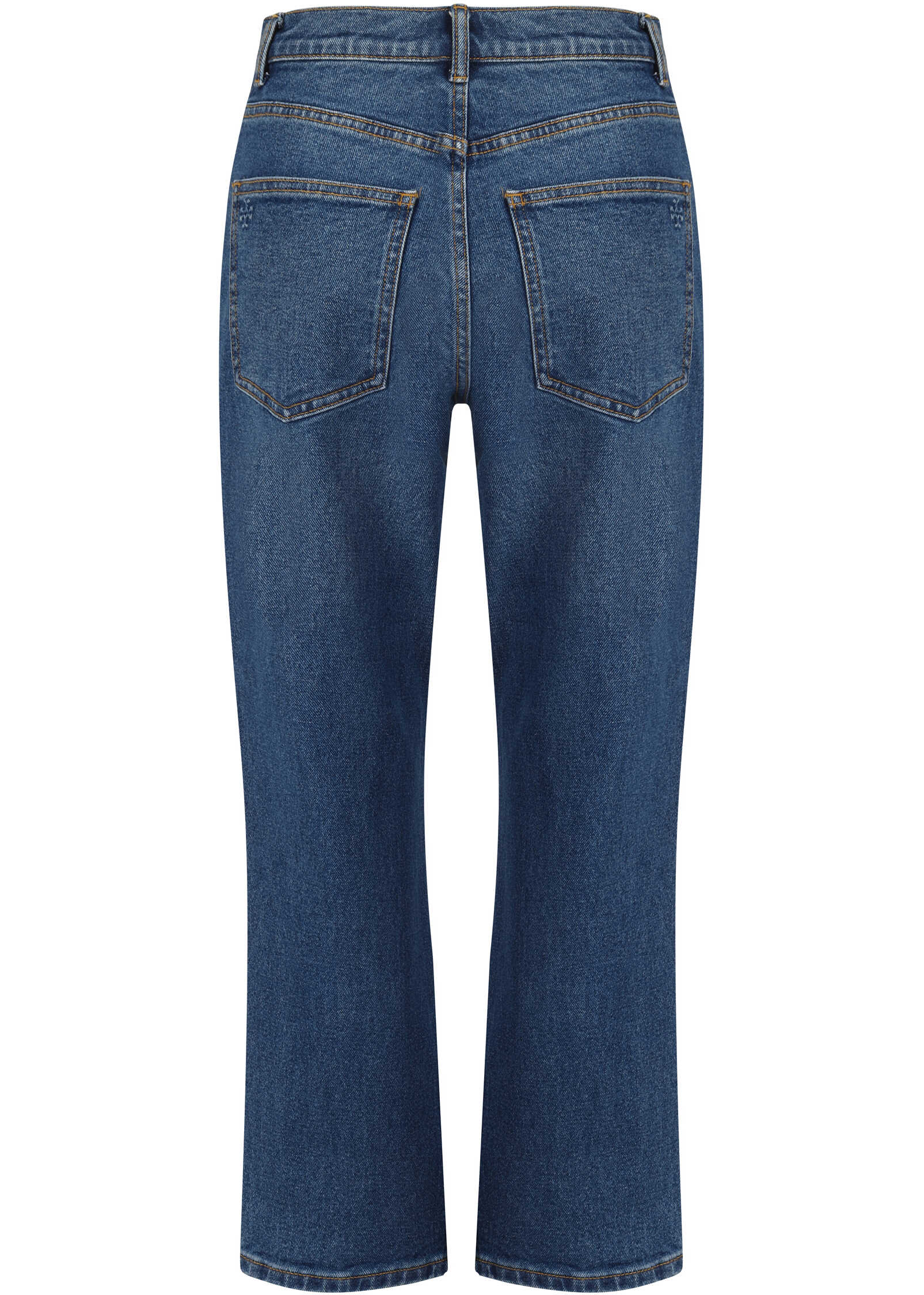 Jeans by Tory Burch , five-pocket cropped flare style, front button closure, waistband loops.