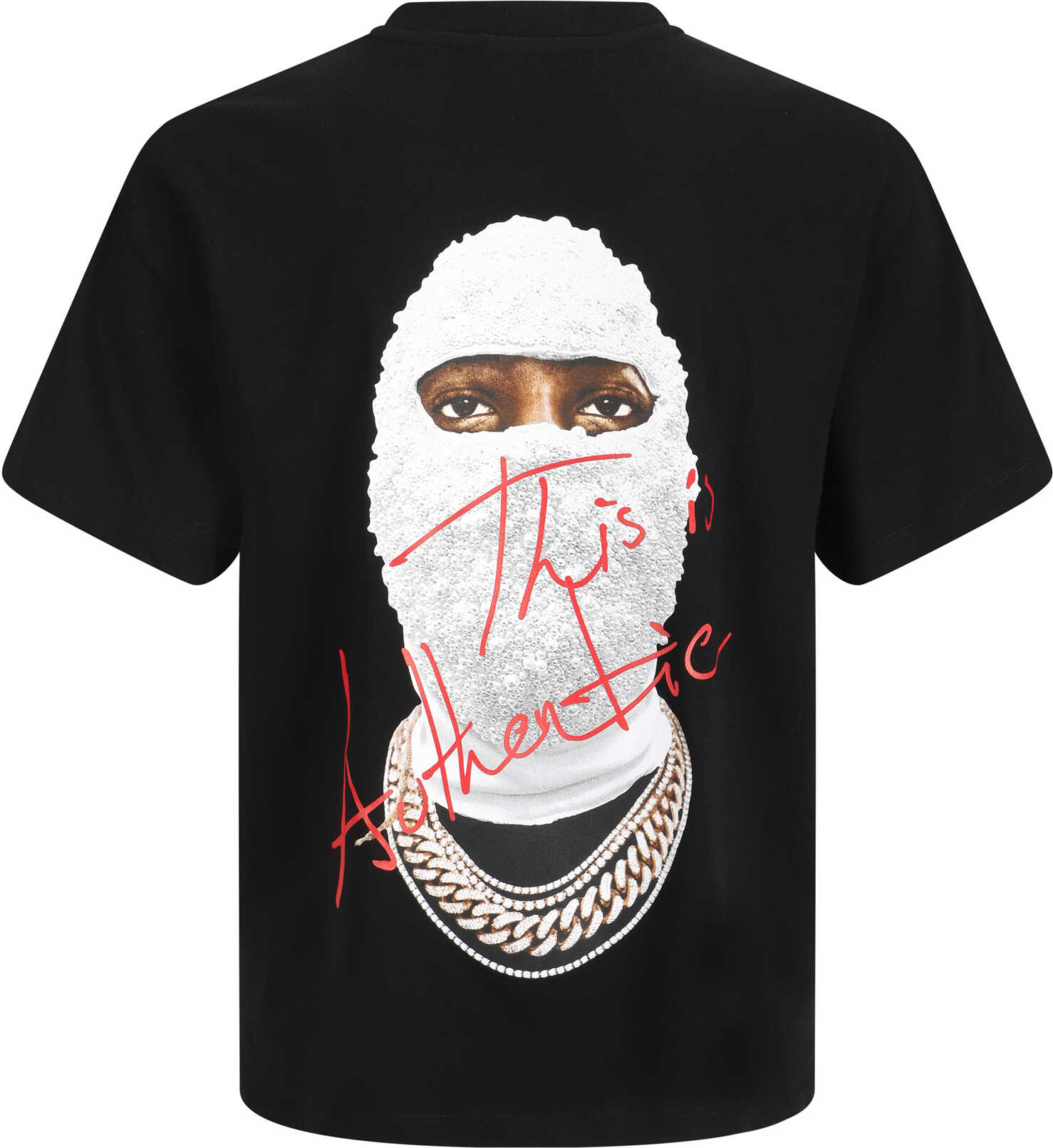 Cotton Mask Authentic Back T-Shirt by Ih Nom Uh Nit, ribbed crew neck, maxi print on back, contrasting iconic brand monogram on front, monochrome pattern, regular fit.