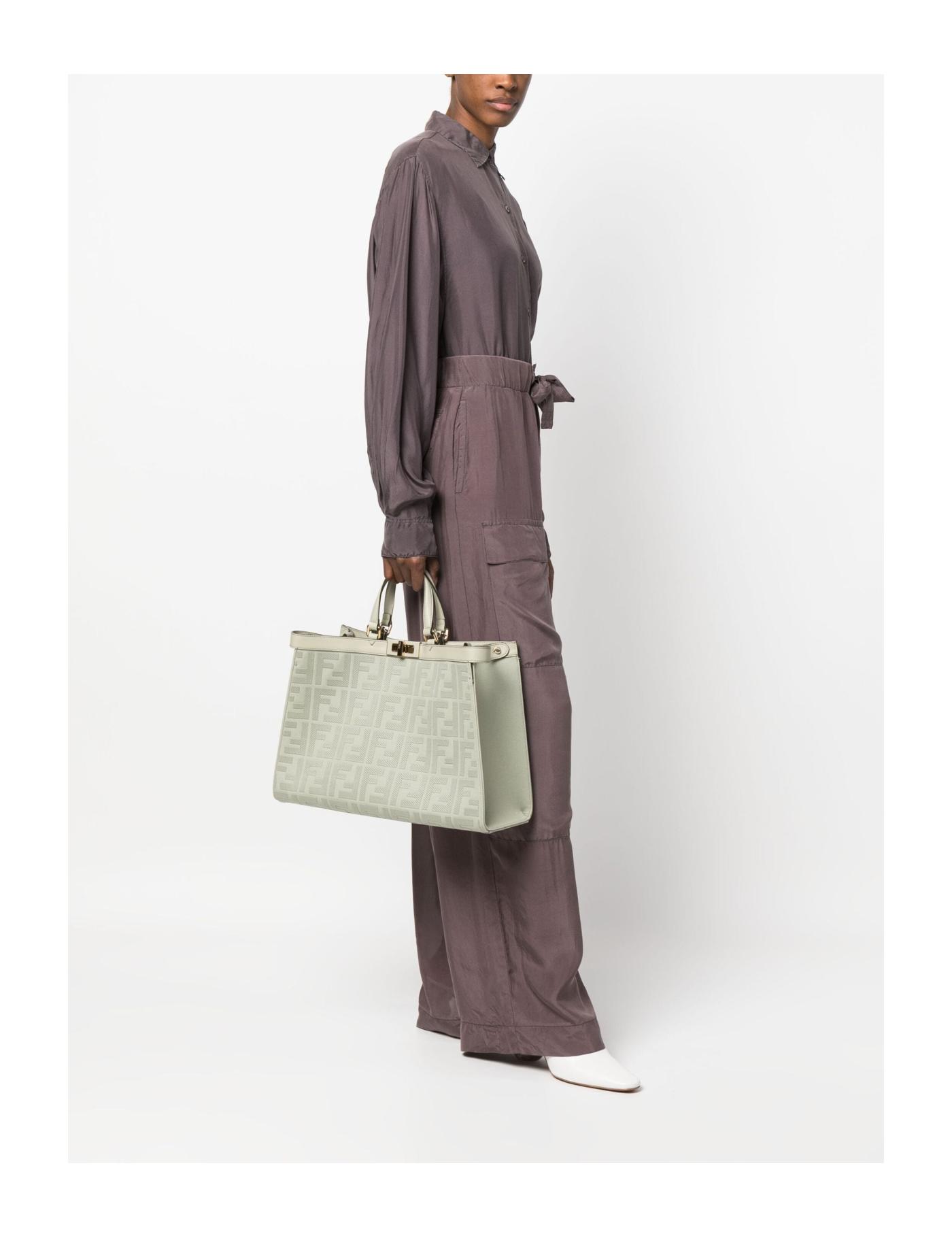 Crafted in Italy, this iteration of the 'X-Tote' bag by Fendi is delivered in the colourway 'green tea' and defined by its all-over raised monogram print. The bag features both two short top handles and two long for versatile styling.