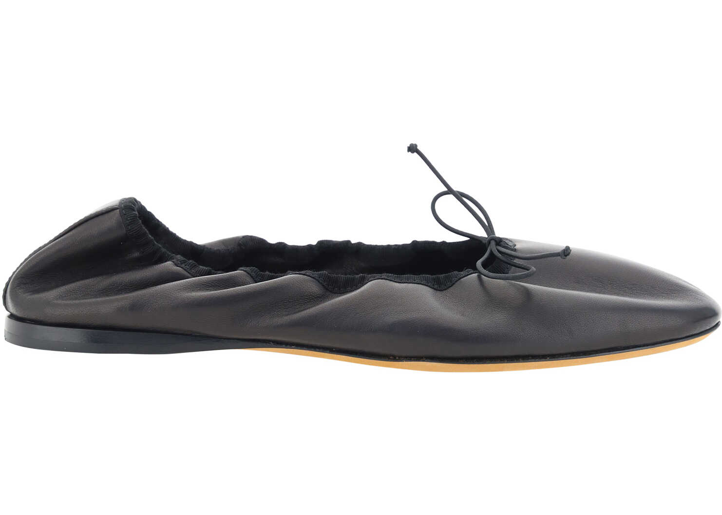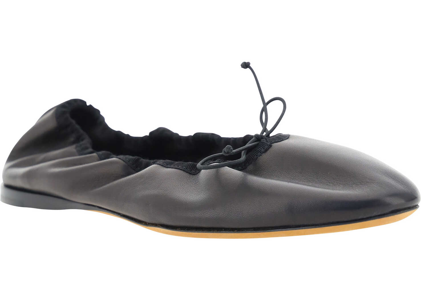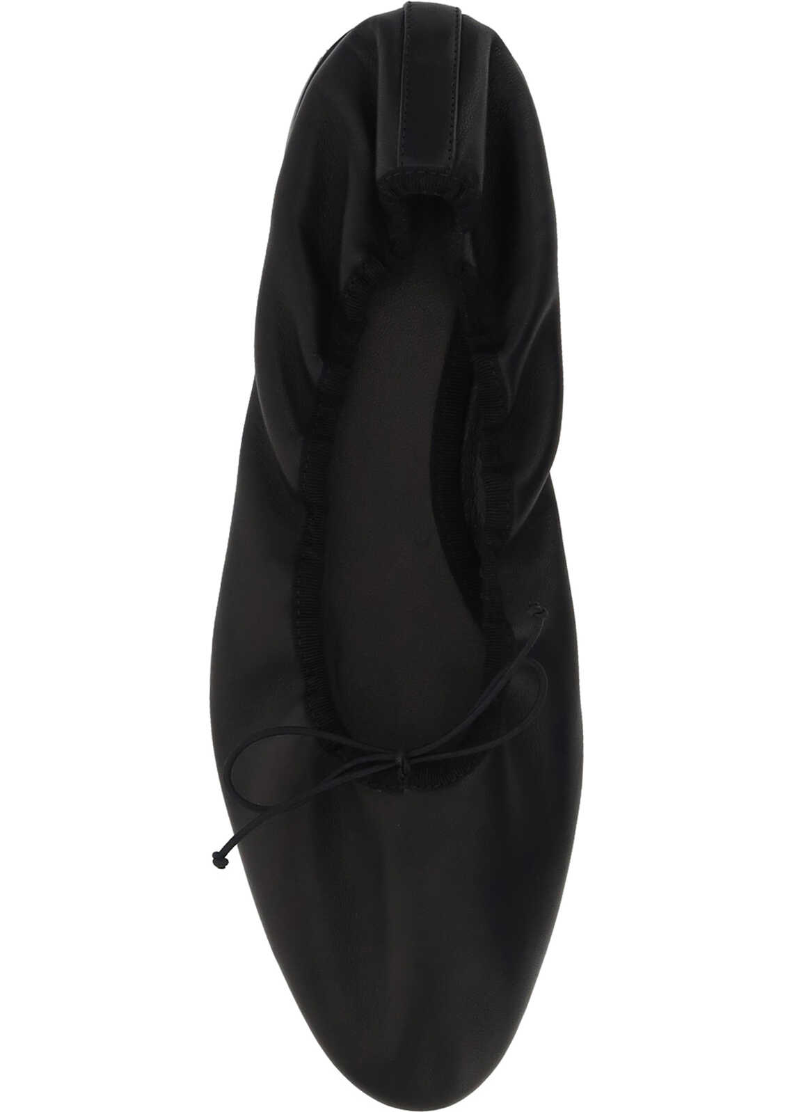 Leather Hereditas Ballerinas by The Row, gathered design with elasticized upper, round toe, bow on upper.
