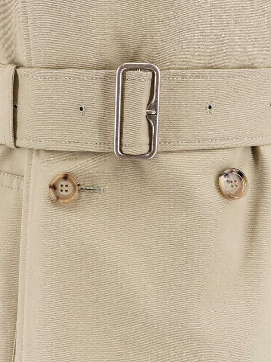 Cotton blend trench Double-breasted closure with button Removable and adjustable belt at waist Front pockets Lining with check motif 65% polyester 35% cotton Size Range : STANDARD NUMERIC Custom Tariff :: 6202409000