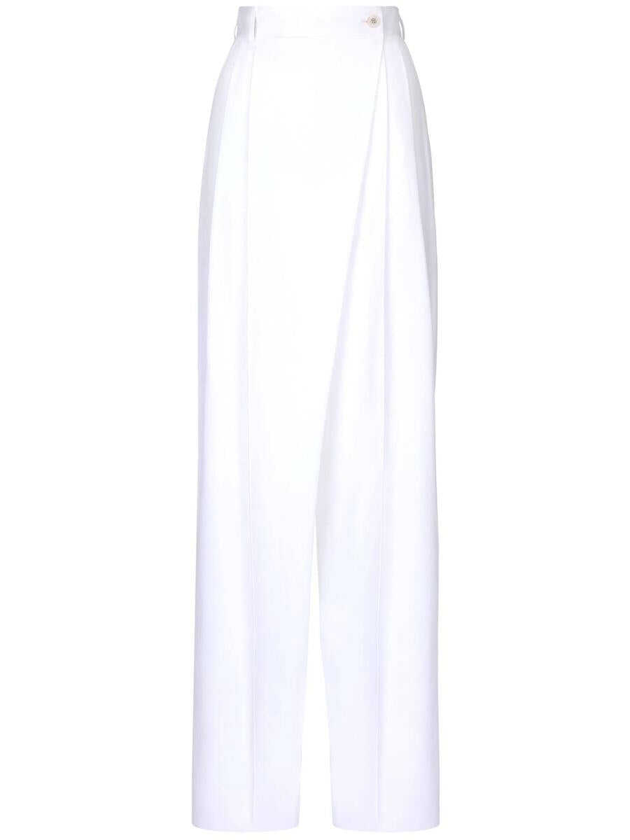 Optical white cotton poplin texture wrap design high-waisted pleat detailing concealed fly and button fastening flared two side slit pockets