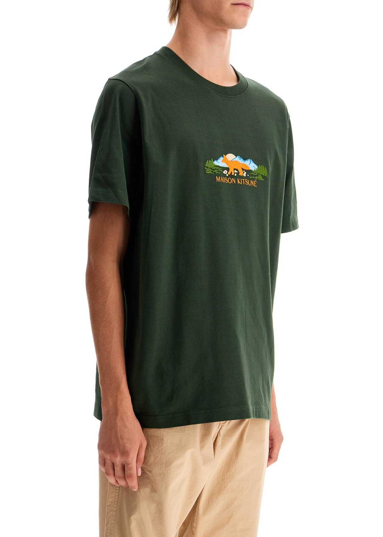 The Maison Kitsuné crew neck t-shirt is decorated with the "Outdoor Profile Fox" motif embroidered on the front. Made of compact cotton jersey, it has a comfortable fit with ribbed neckline. The model is 187 cm tall and wears size L.