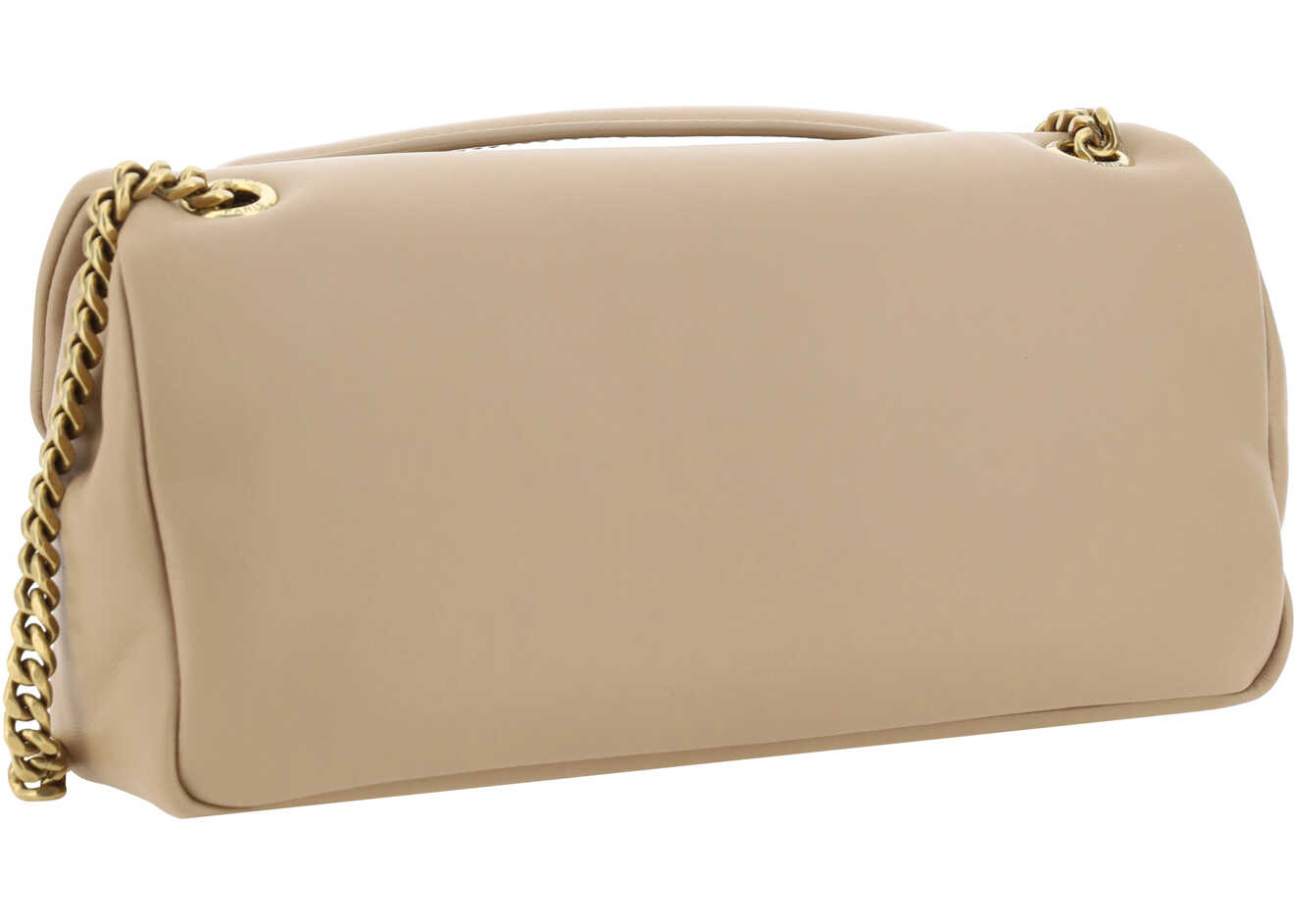 Calfskin Calypso Shoulder Bag by Saint Laurent featuring front closure via magnetic flap, front embossed YSL iconic brand logo plaque, dual interior compartment, sliding chain strap with flat leather detail.
