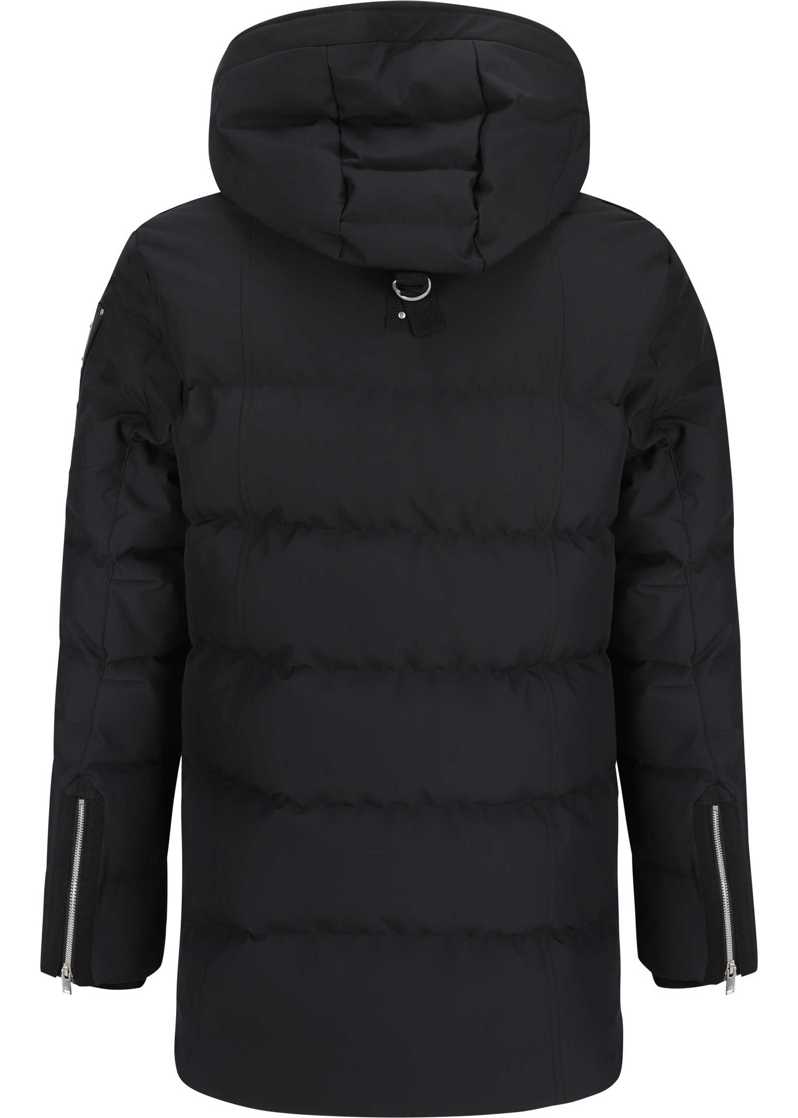 Cloud Down Jacket by Moose Knuckles, design with removable drawstring-adjustable hood, double-slider front zipper and button closure, two side welt pockets, two front flap welt pockets, zipper-adjustable cuffs, all-over padded and quilted design, monochrome pattern, regular fit.
