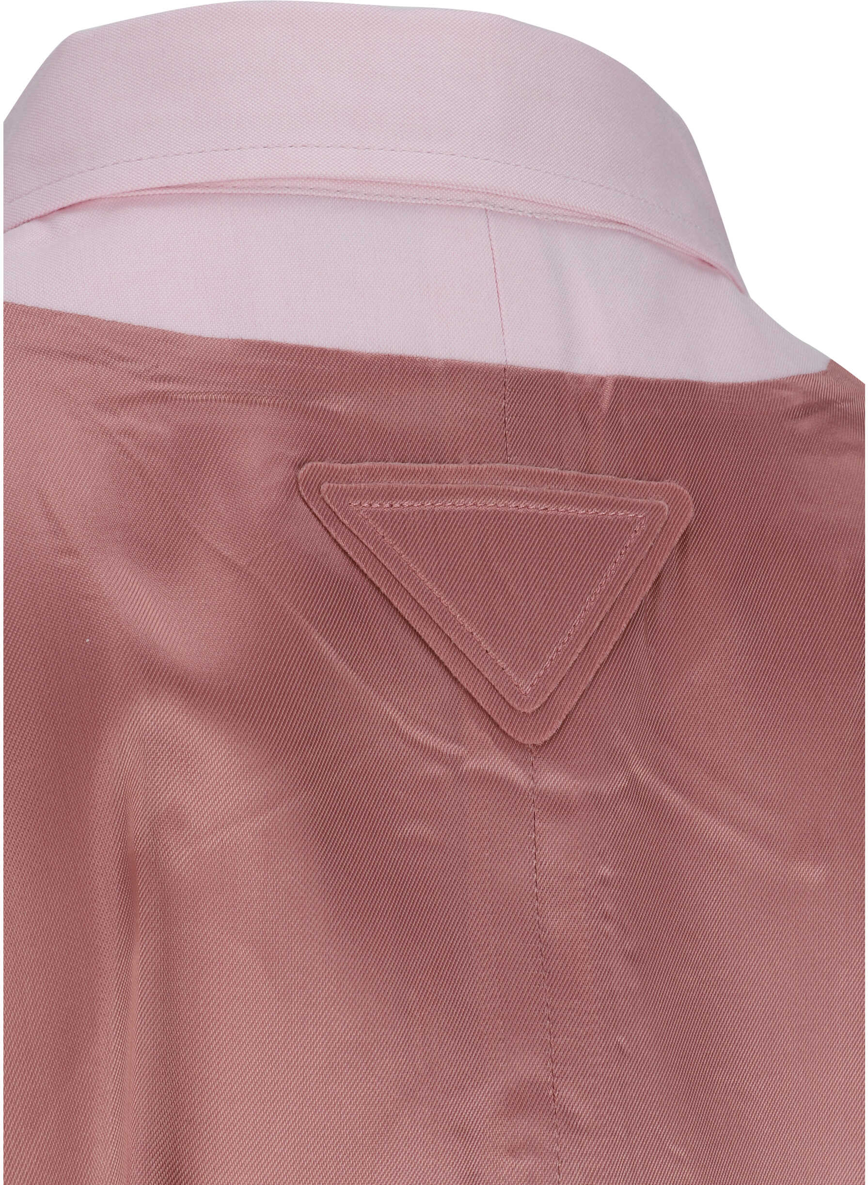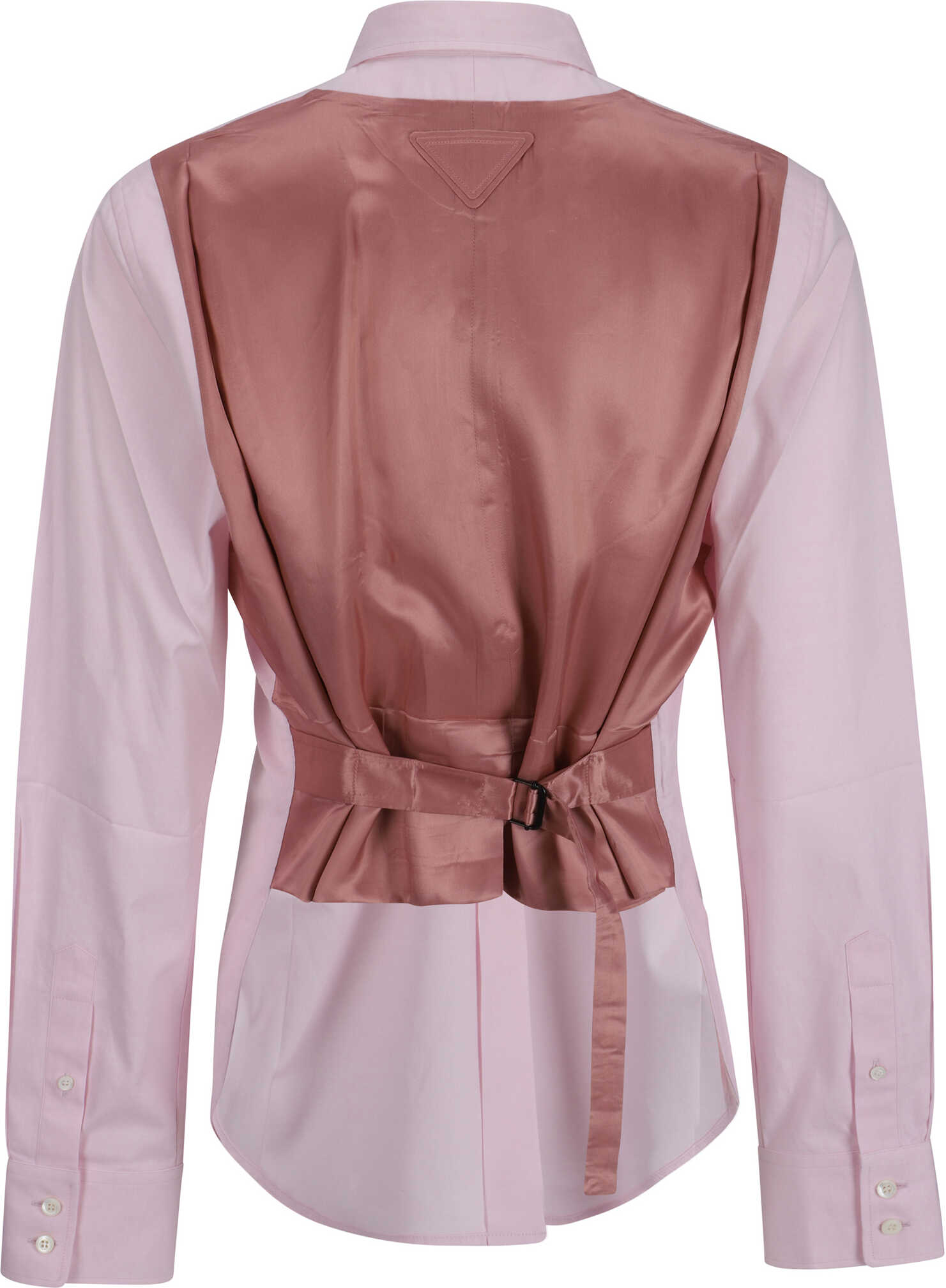 Cotton Shirt by Prada, classic collar, button front closure, adjustable button cuffs, asymmetrical hem, back panel with adjustable martingale pattern strap, monochrome pattern, regular fit.