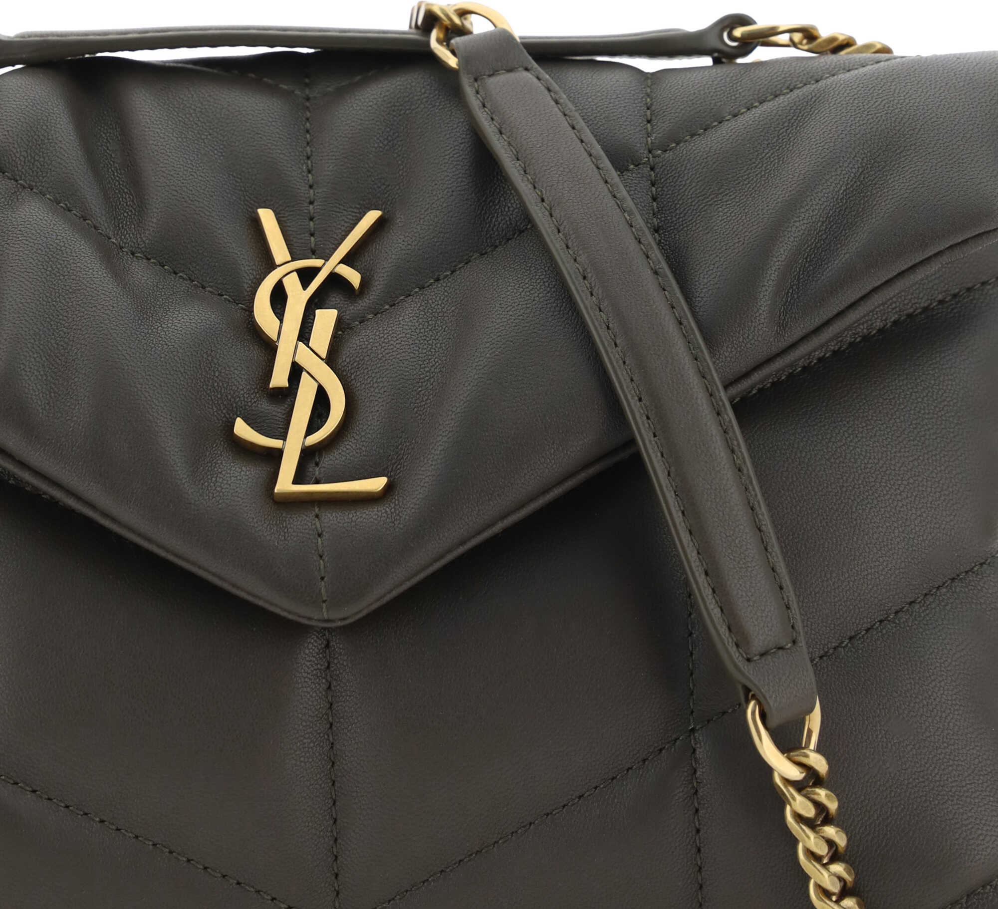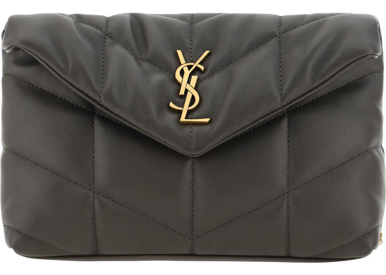 Lambskin Puffer Toy Shoulder Bag by Saint Laurent, front closure via magnetic flap, all-over padded and quilted chévron design, embossed iconic YSL brand logo plaque on front, triple interior compartment, sliding chain shoulder strap with flat leather detail.
