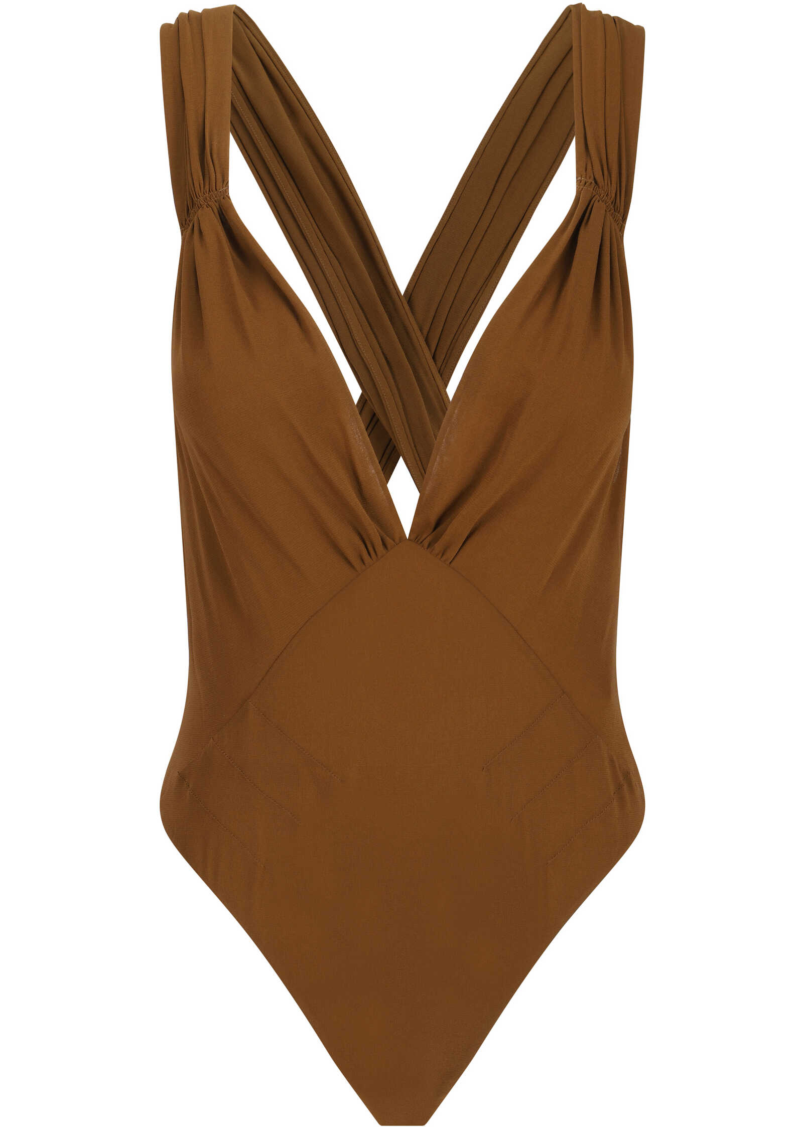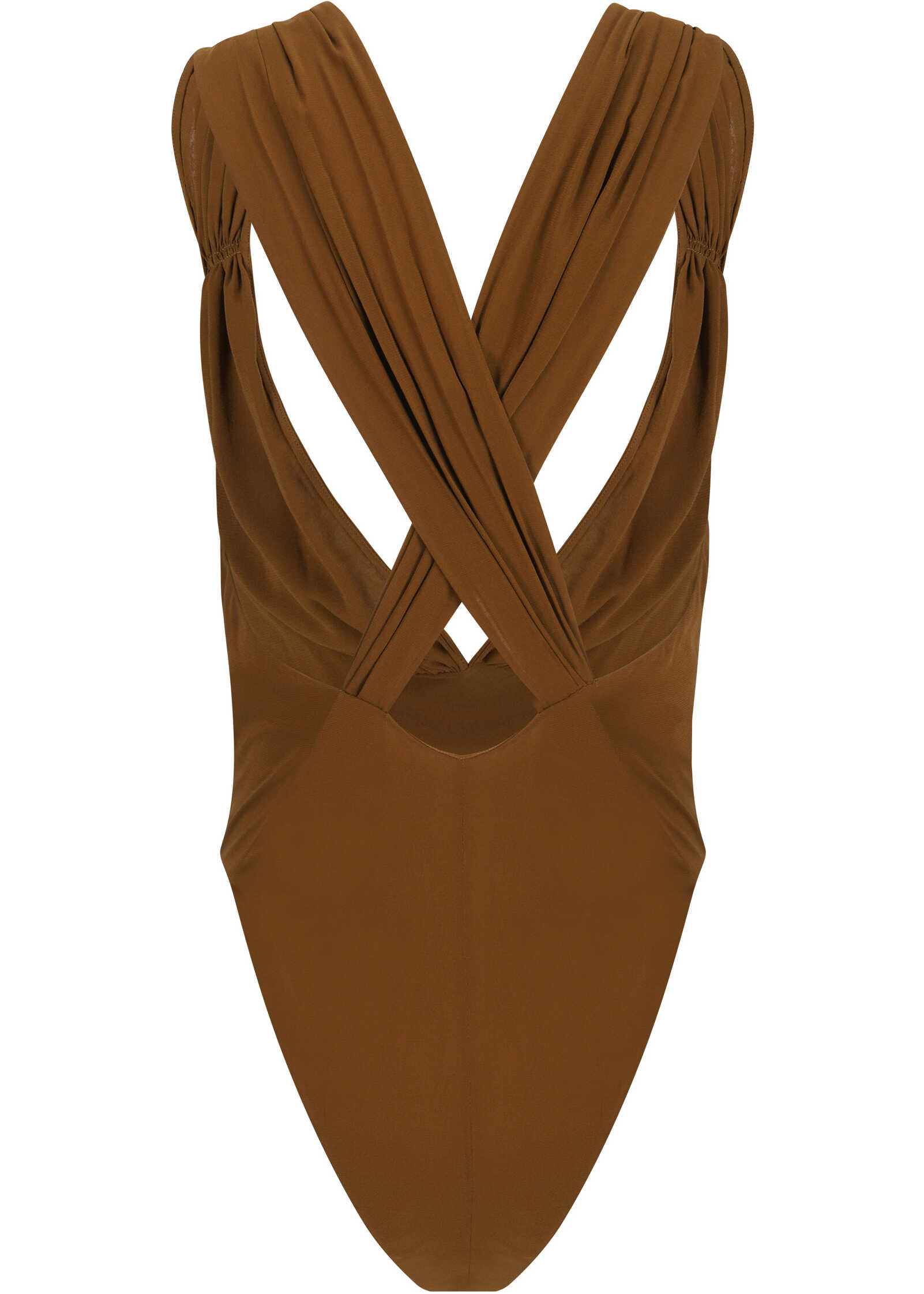Silk Mousseline Lingerie De So Bodysuit by Saint Laurent , sleeveless design, V-neck, monochrome pattern, slim fit.