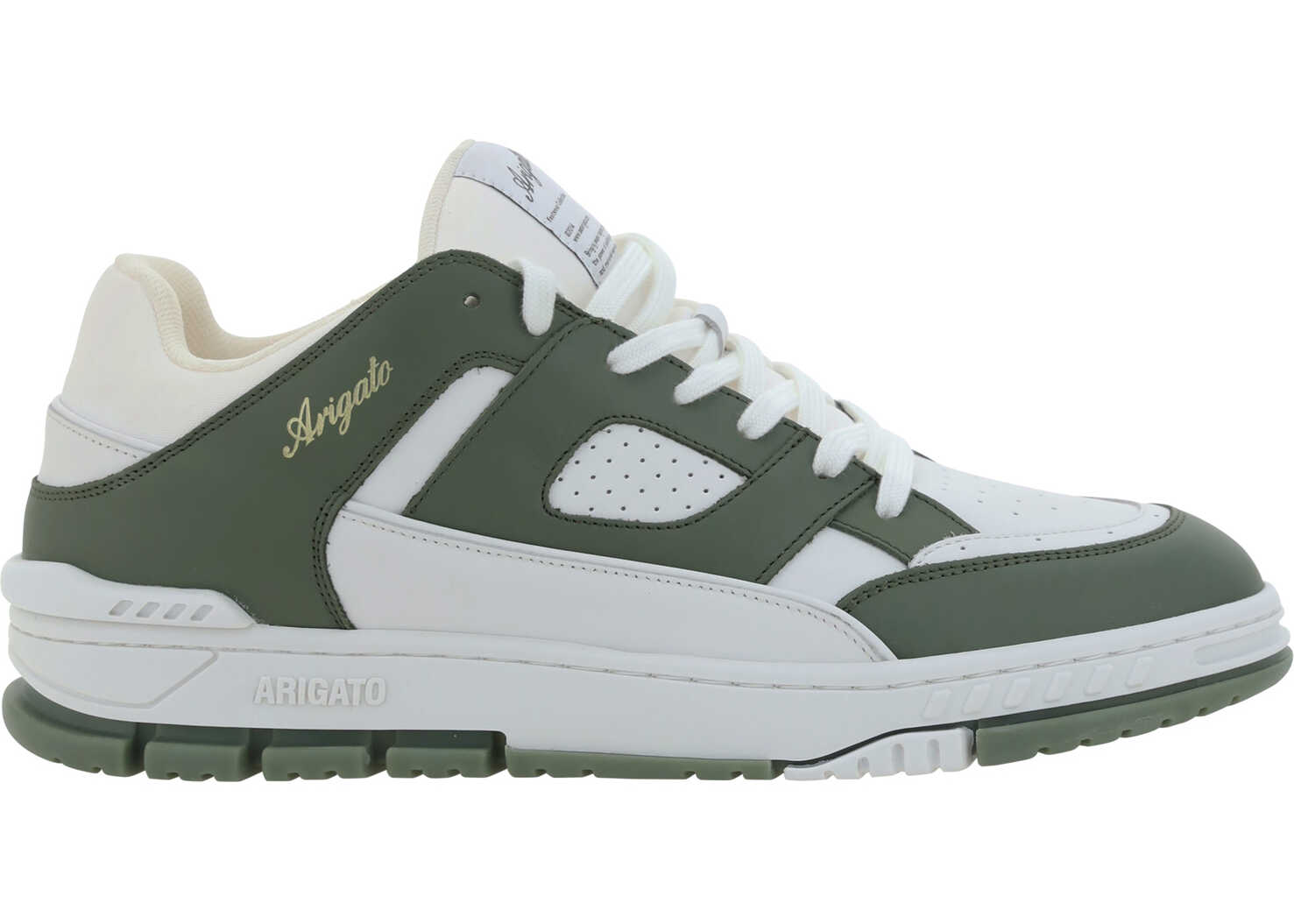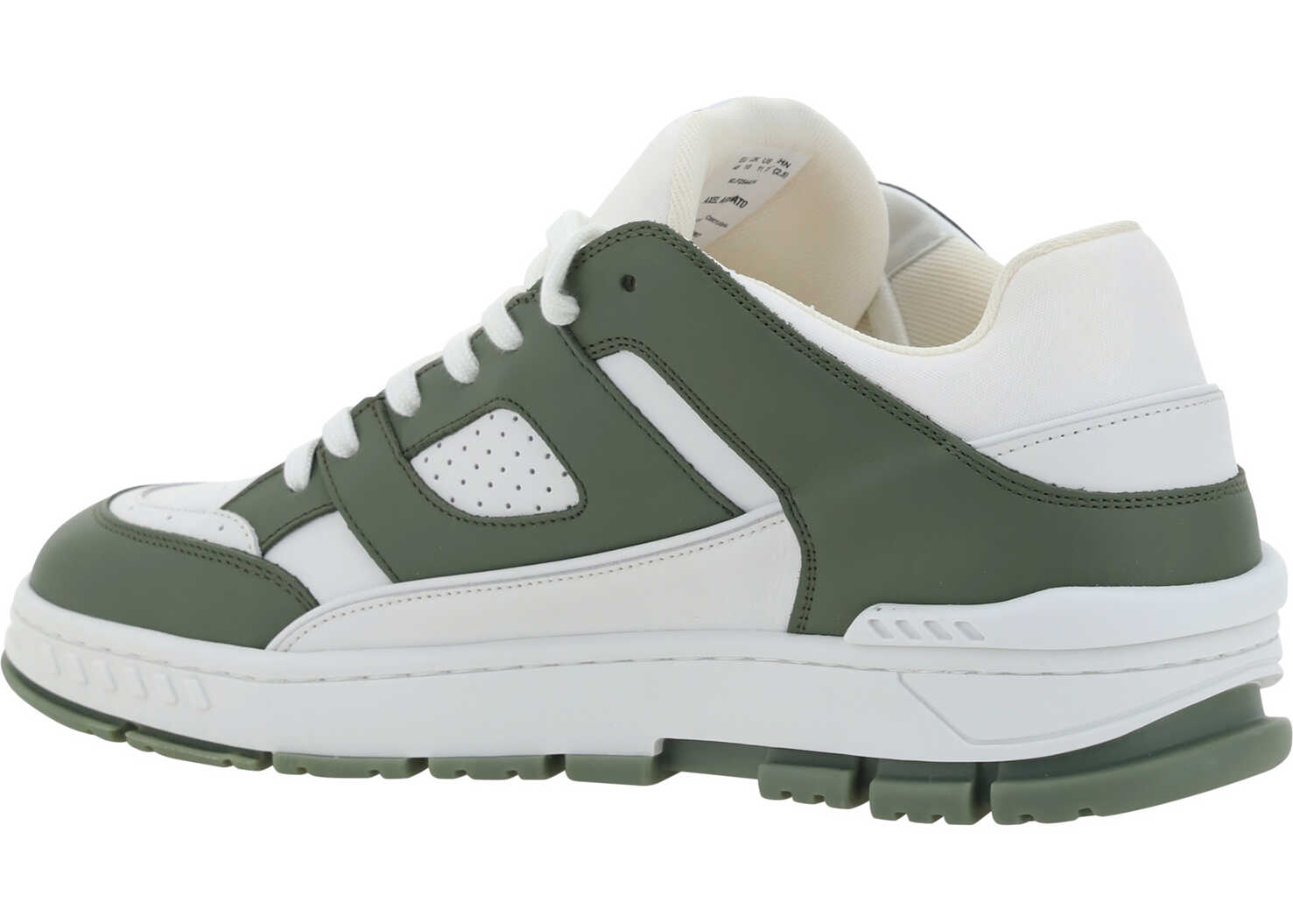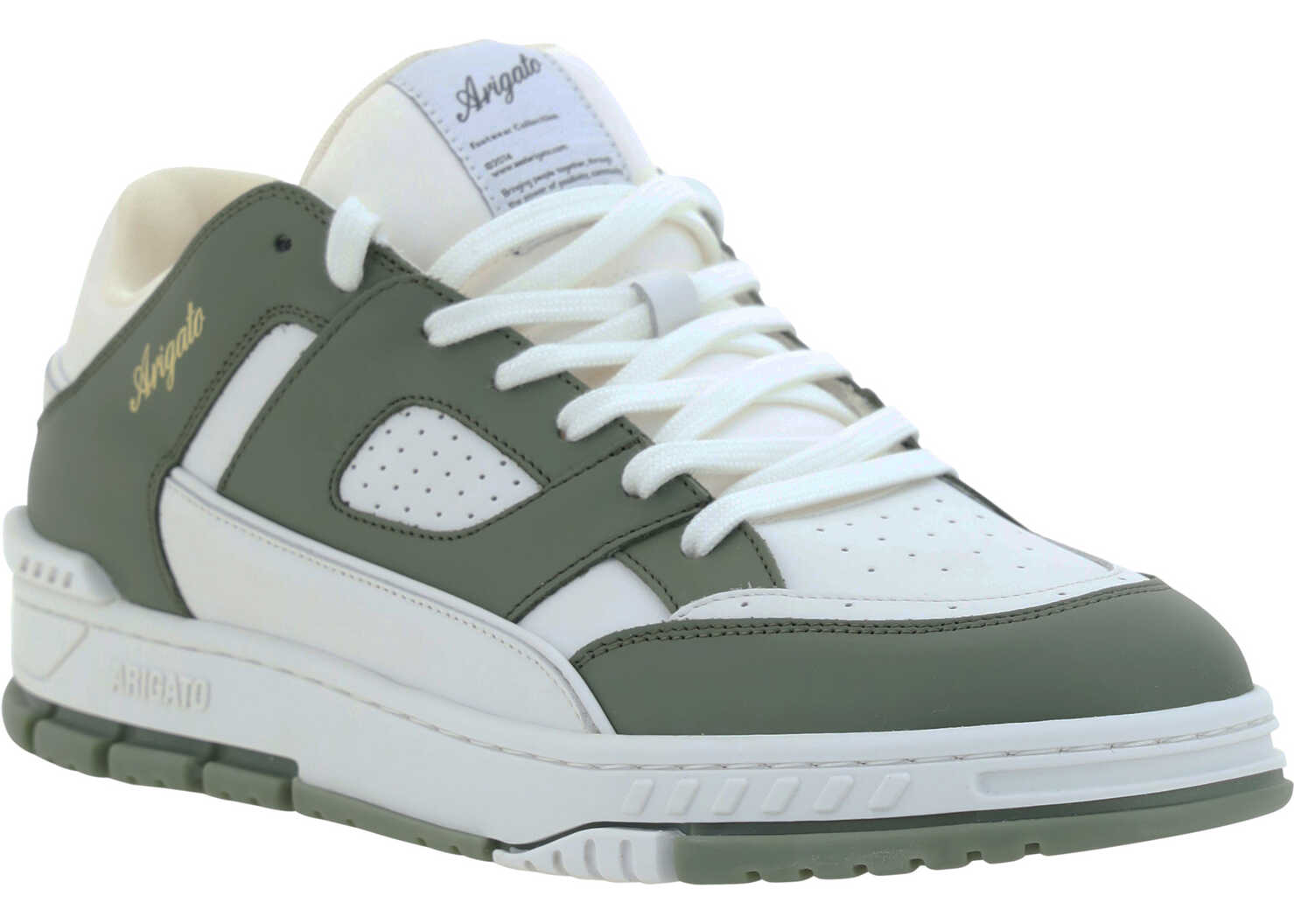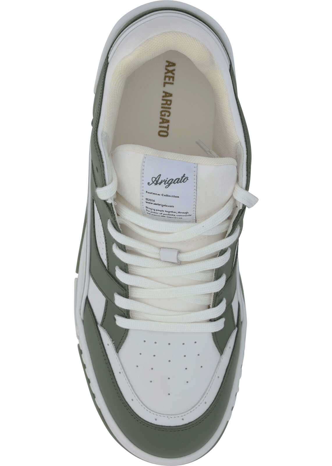 Leather Area Sneakers by Axel Rigato, round toe, flat sole, front lace-up closure, contrasting paneled design, iconic brand monogram patch applied on tongue, iconic brand signature pressure-printed on side panel.