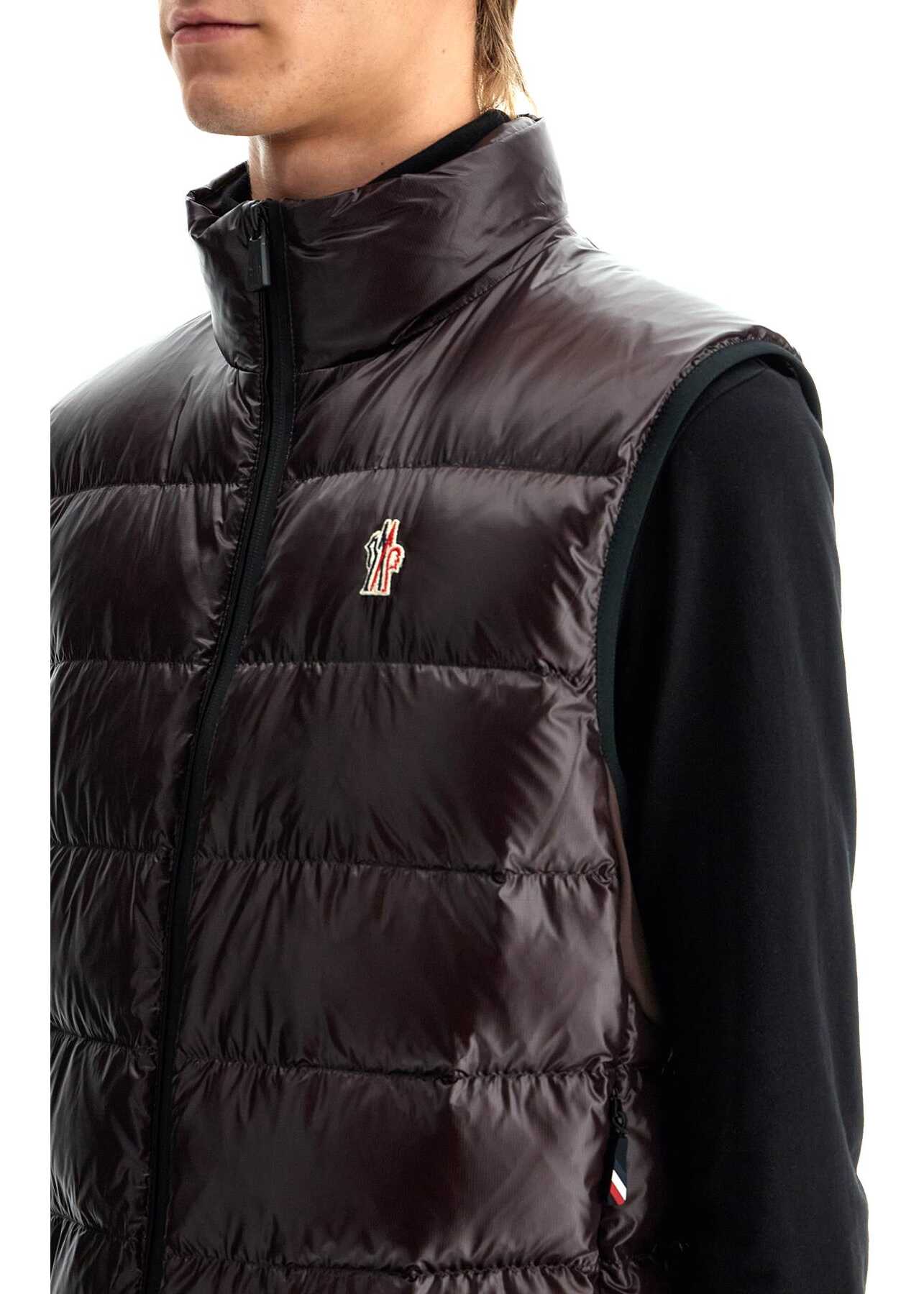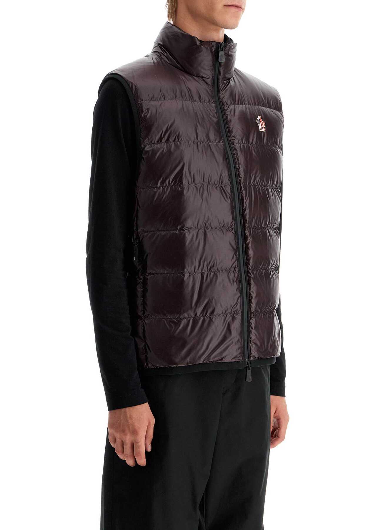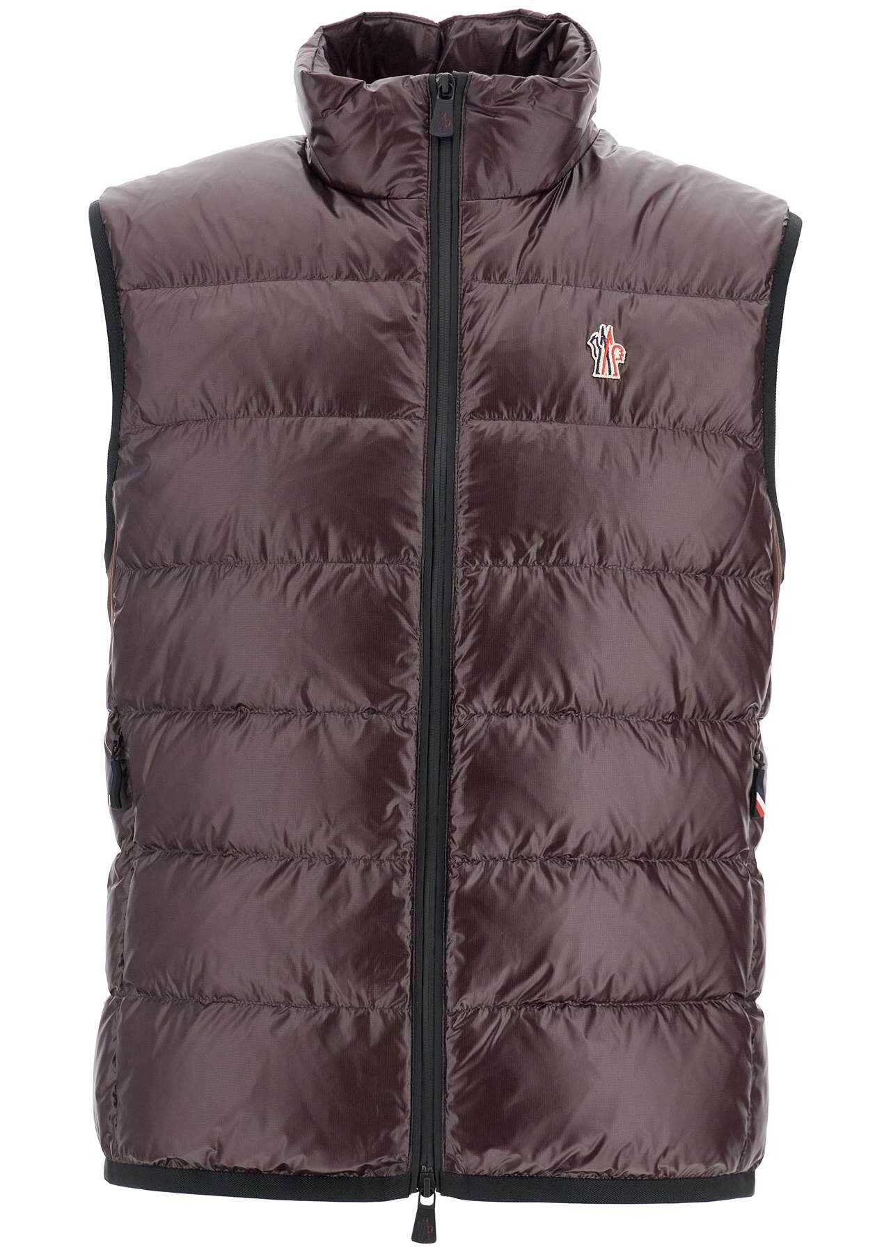 The Moncler Grenoble padded vest is made of micro ripstop on the front and 4-way stretch technical nylon jersey on the back. It features a high collar, two-way zip closure, and side pockets, and is adorned with a logo patch on the chest. The interior is lined and has a regular fit. The model is 187 cm tall and wears size L.