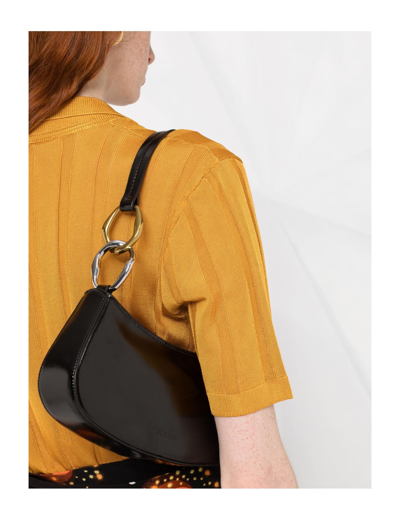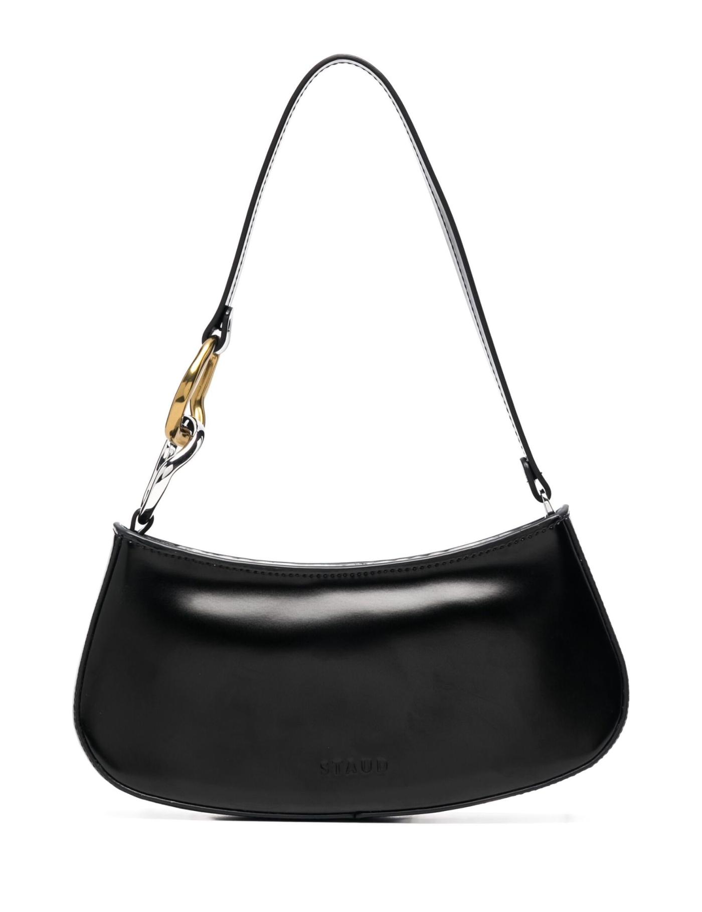 Crafted from polished black leather, the Ollie bag is a testimony to STAUD's classic design. Its rectangular shape carries a vintage appeal, detailed with the brand's embossed logo on the front and mixed-metal hardware on the strap.