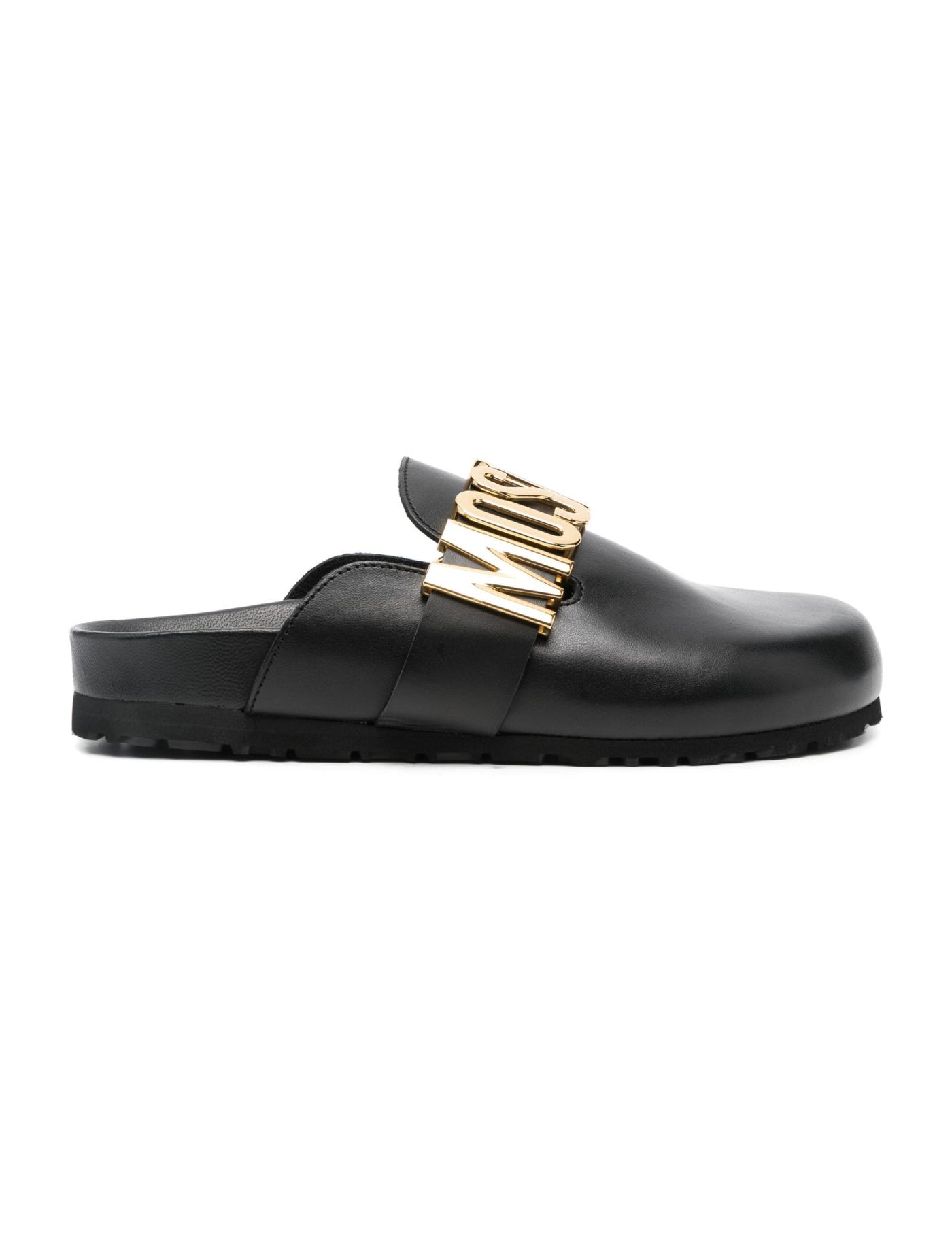 logo-plaque leather mules