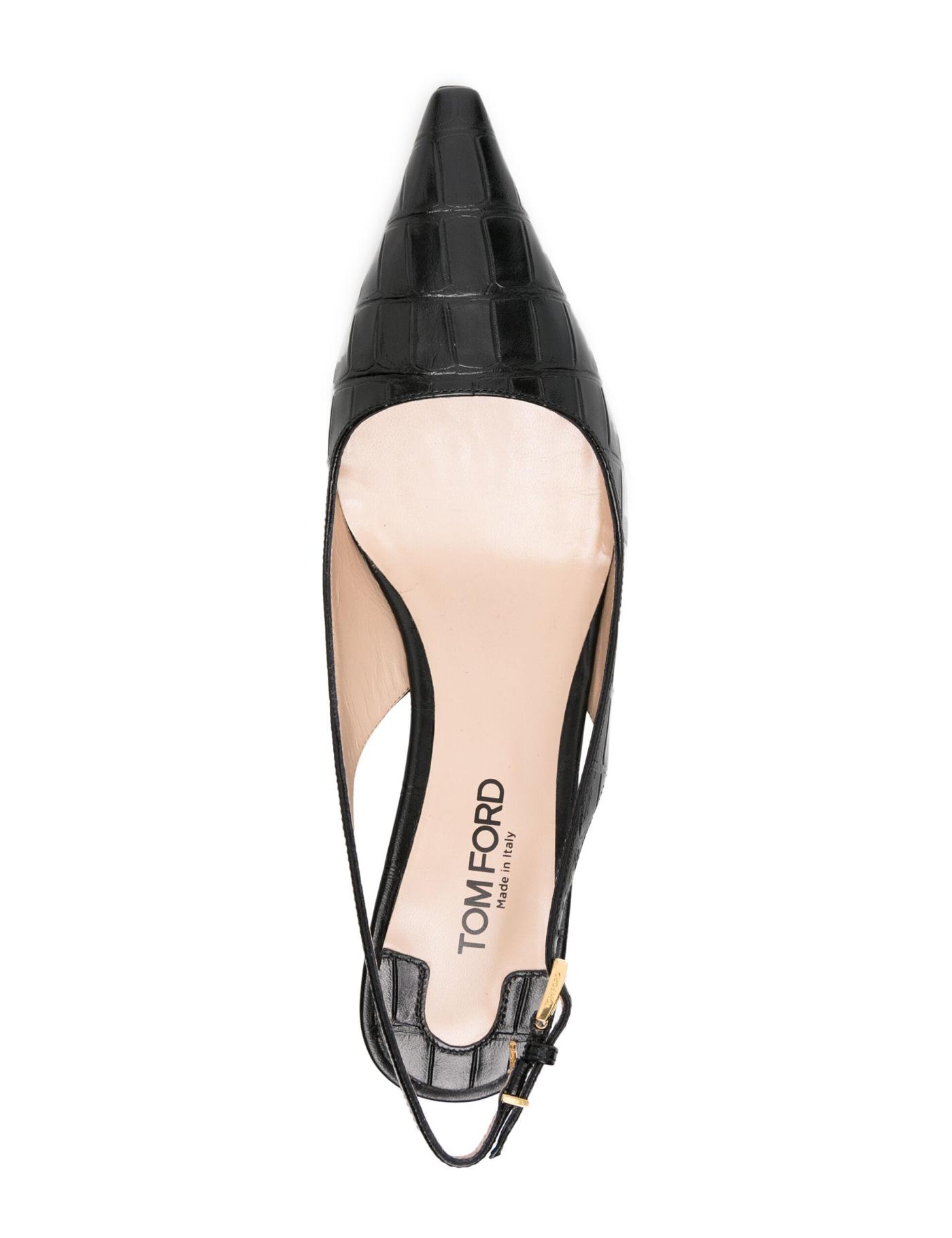 Tom Ford's penchant for bold and sleek silhouettes is embedded in this all-black iteration of the Angelina pumps. They're crafted from calf leather embossed to a crocodile effect and adorned with a gold-tone monogram plaque.