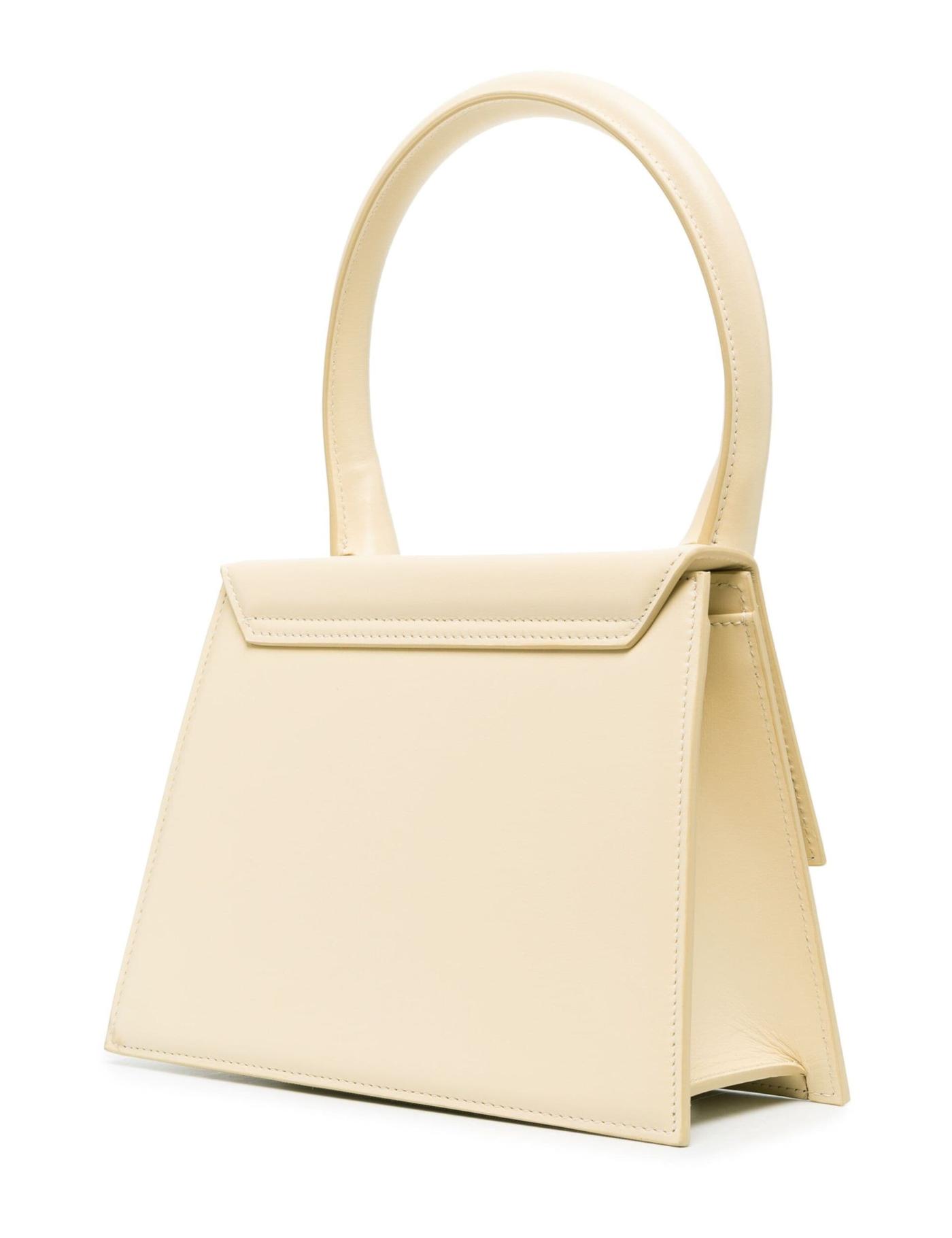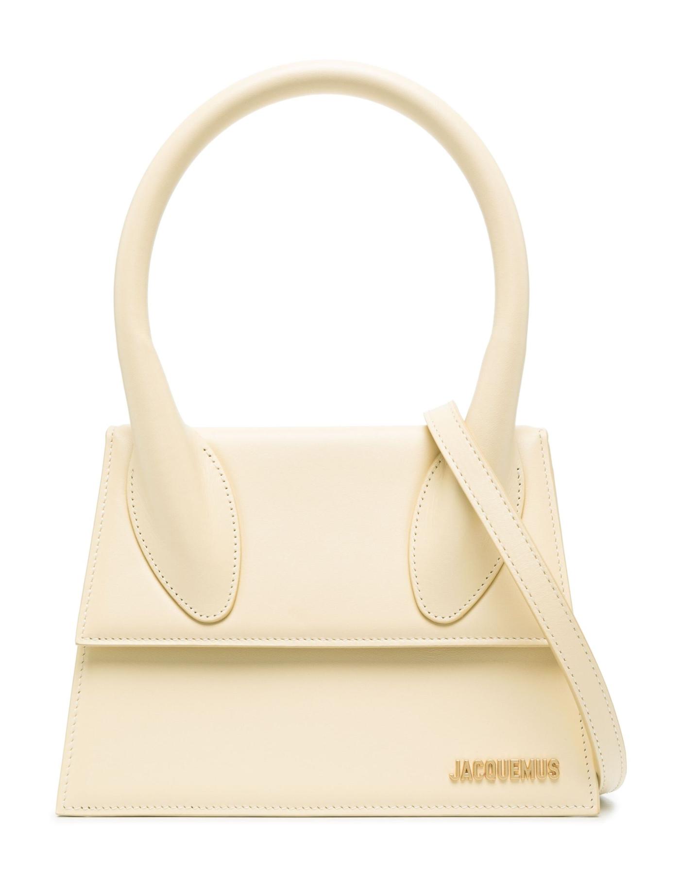 Jacquemus' iconic Le Chiquito bag is reimagined in a larger size with the Grand iteration, showcased here. Crafted from smooth leather, it's presented in a muted ivory-white colourway that accentuates the structured square silhouette.