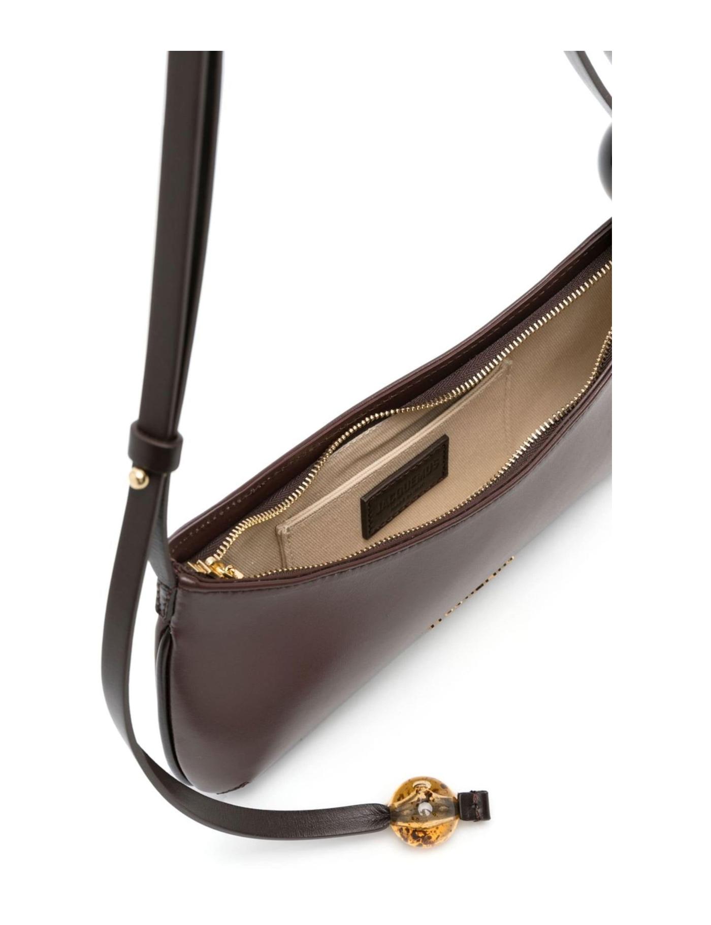 A highlight of the label’s SS23 Le Raphia show in Paris, this Le Bisou Perle shoulder bag demonstrates Jacquemus’ inventive aesthetic. Crafted from supple leather to a curved silhouette, it’s characterised by oversized bead detailing that adorns the shoulder strap.