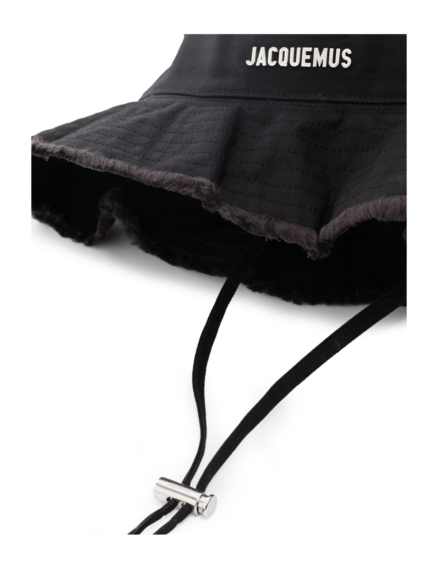 Jacquemus' AW21 collection conjured a vision of effortless styling, inspired by the French countryside. In a black hue, the Le bob Artichaut bucket hat is punctuated with a small silver-tone plaque to the front and features a delicately frayed dropped wide brim.