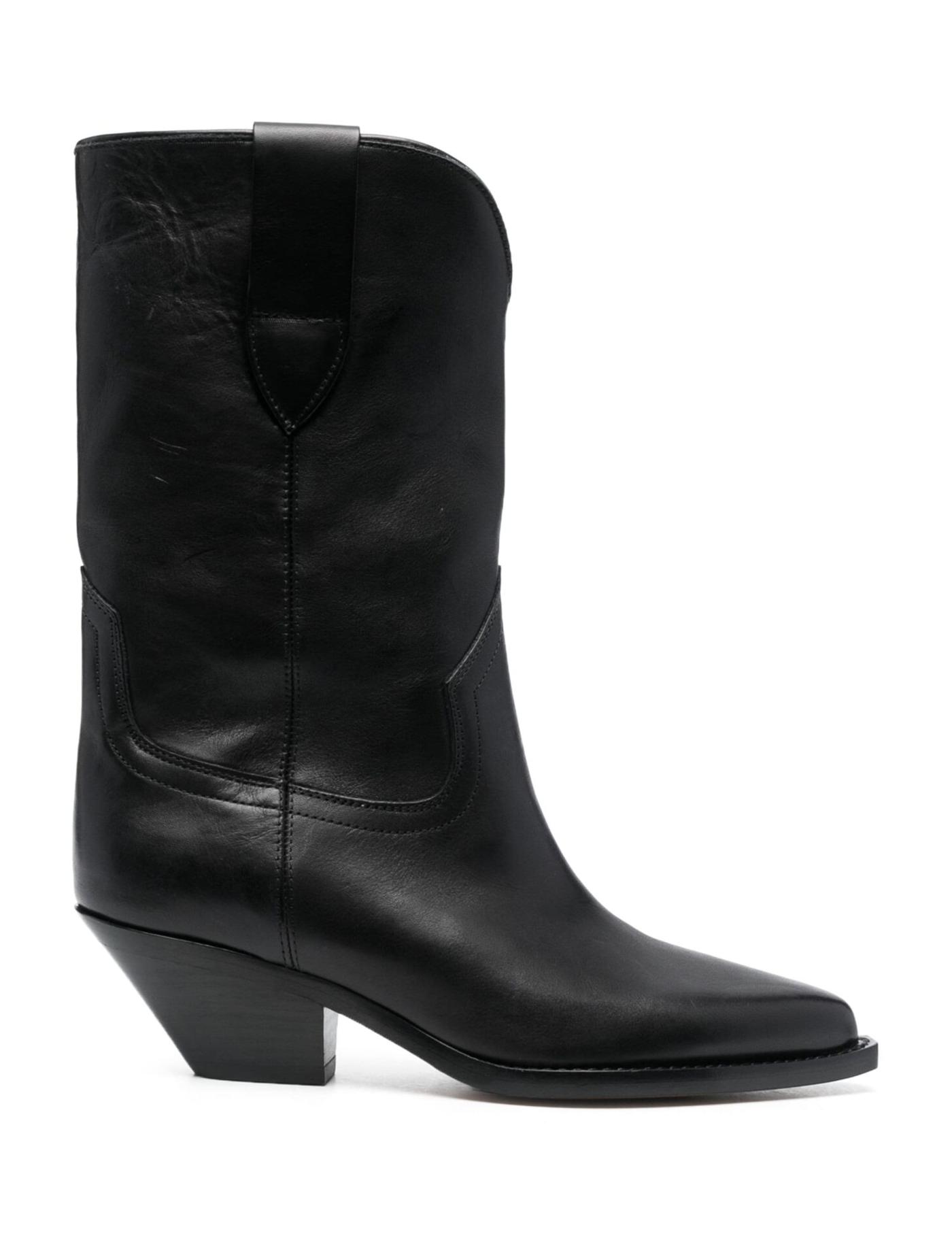 Isabel Marant updates the signature Dahope boots with this black iteration for the AW23 collection. Crafted in France from calf leather, they mirror Western aesthetic with a pointed silhouette and 50mm Cuban heels.