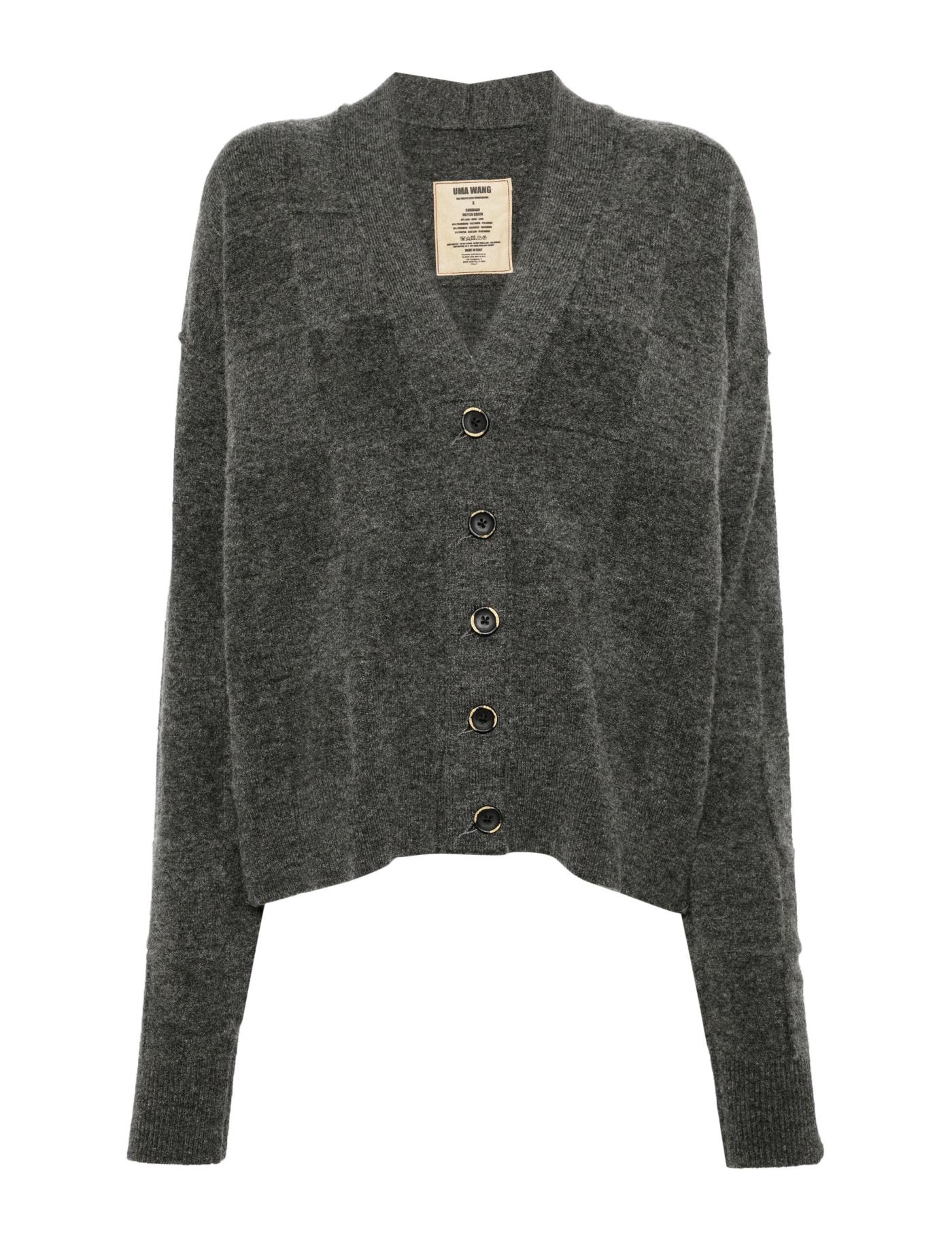 checked V-neck cardigan