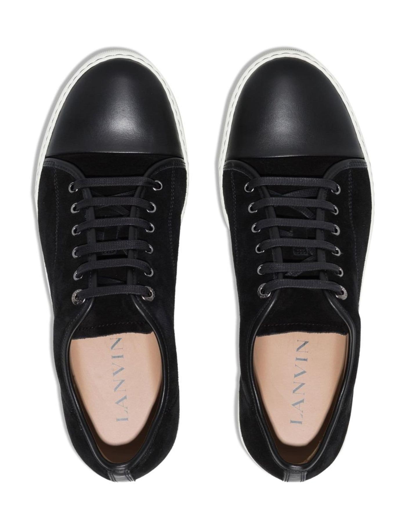 Showcasing the Parisian house's craftsmanship and attention to detail, the DBB1 sneakers are included in Lanvin's AW22 accessory edit in a black iteration made from buttery leather. Boasting suede panelling at the upper, they sit atop a discreet flat rubber sole.