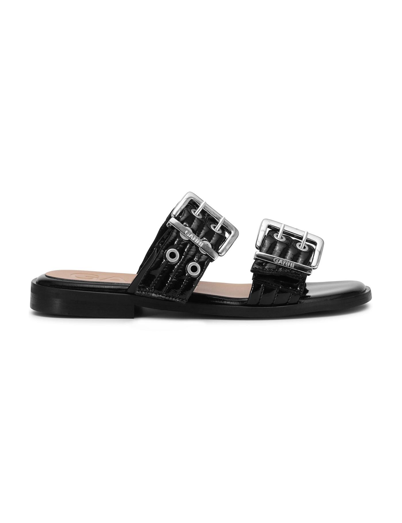GANNI Buckle flat leather sandals