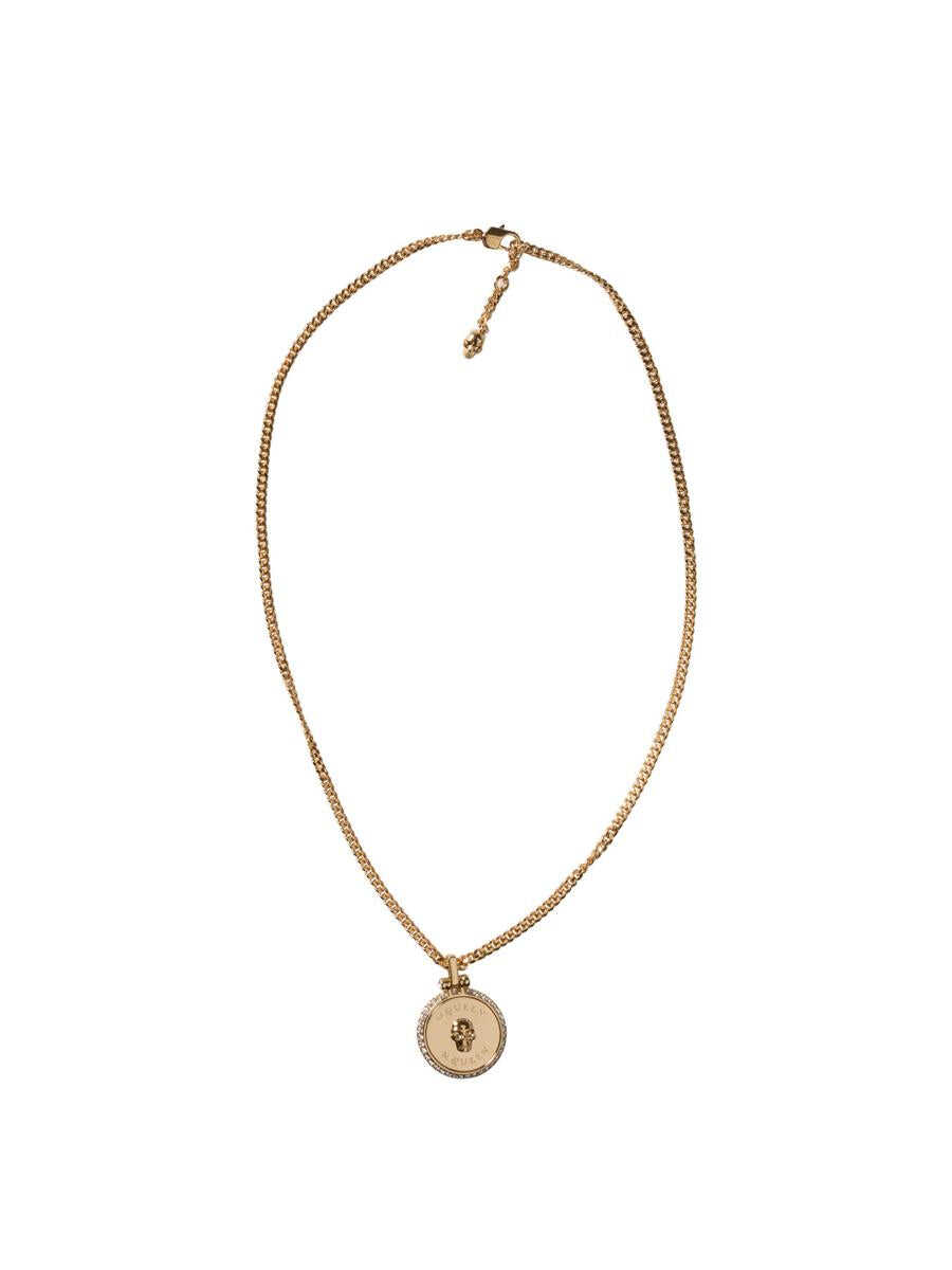 Alexander McQueen's "Sovereign Skull" necklace is a work of art that combines style and boldness. Perfect for the bold modern woman, this precious piece of jewelry will add a touch of sophisticated edge to any outfit. The skull pendant, with its embossed details and engraved McQueen logo, makes this necklace a distinctive and inimitable accessory.
