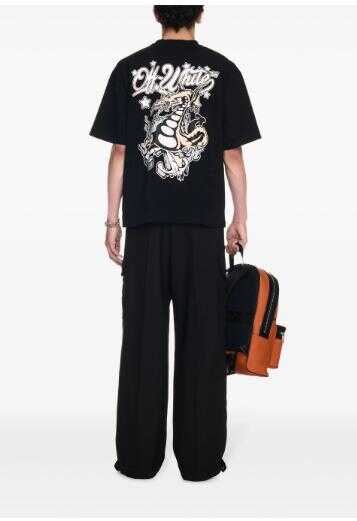 black/multicolour cotton jersey texture logo print at the chest graphic print to the rear crew neck drop shoulder short sleeves straight hem
