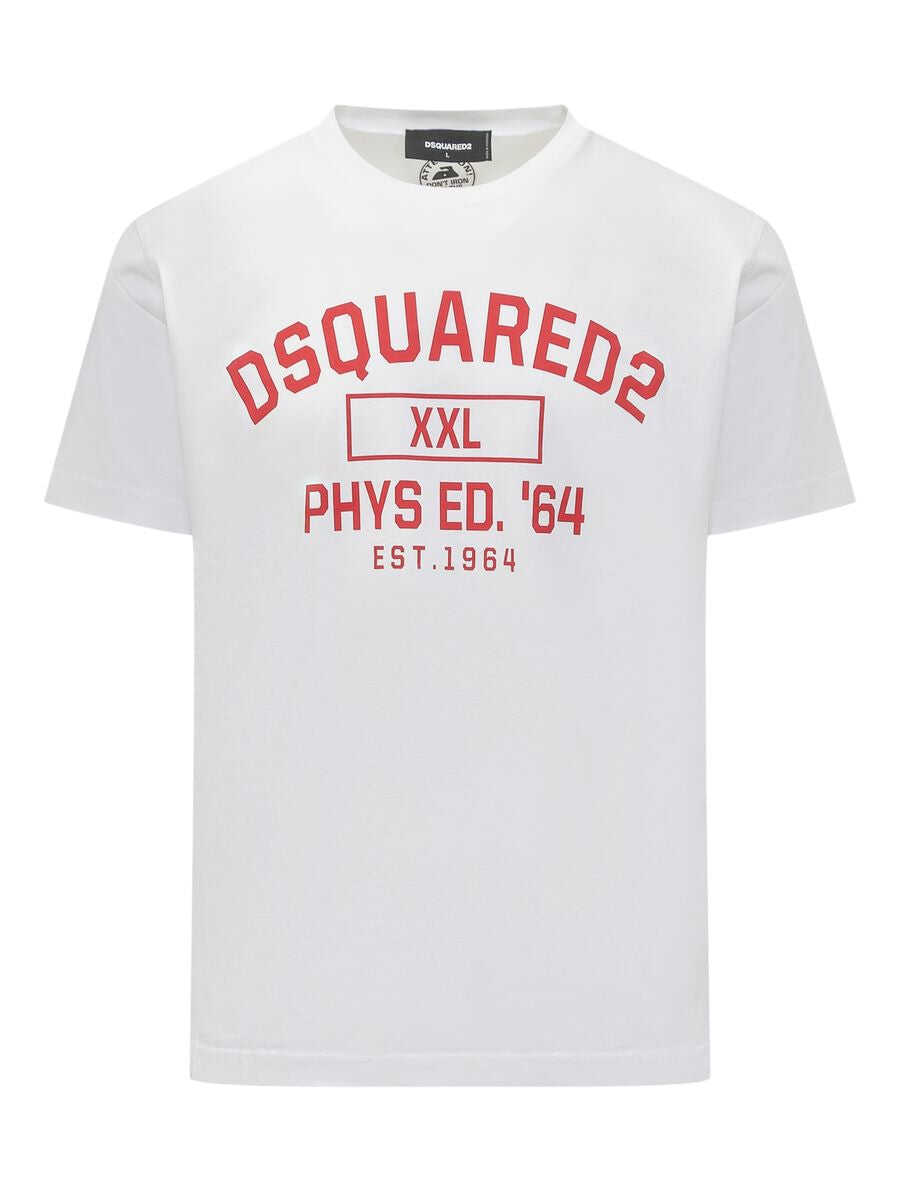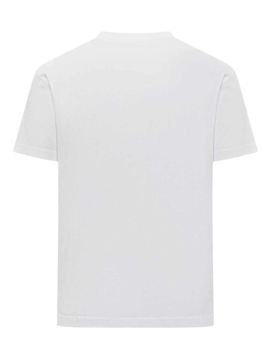 White cotton T-shirt. Crew neck. Contrasting logo print.
