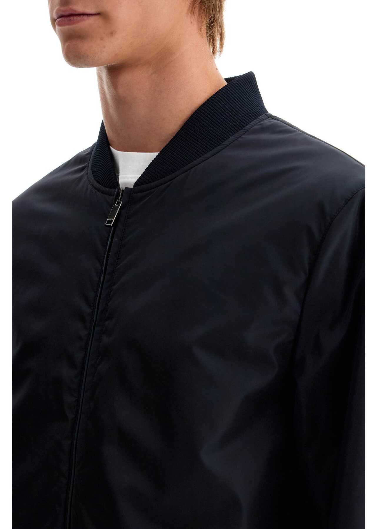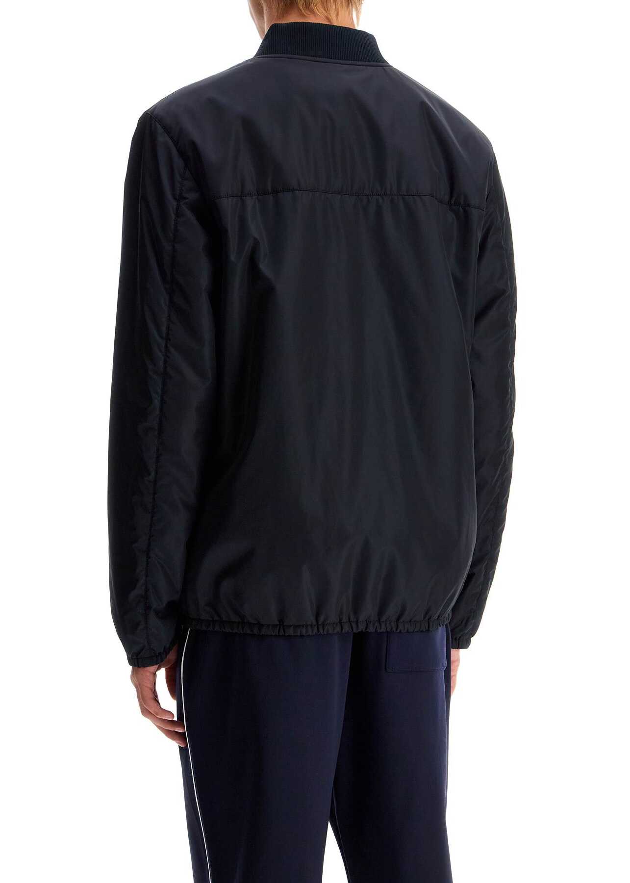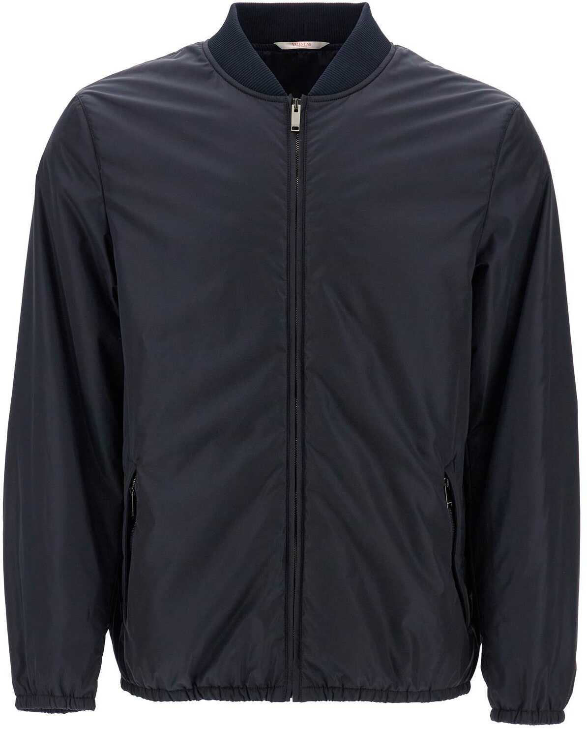 Valentino's nylon bomber jacket features a regular fit with elasticized cuffs and hem, as well as a ribbed collar. It has a zip closure, front flap pockets with zippers, a back yoke, Iconographe Toile lining, and an inner pocket. The model is 187 cm tall and wears size IT 48.