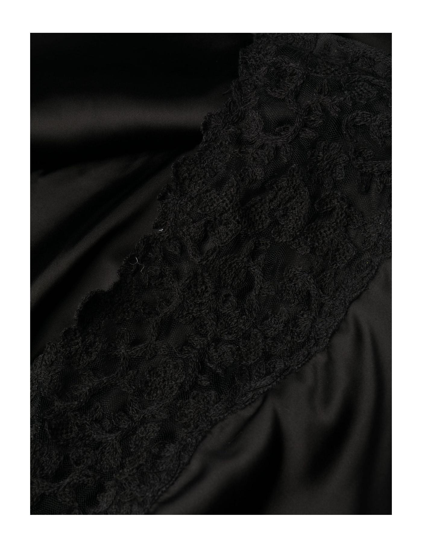 Jacquemus references lingerie dressing to re-imagine its signature La Saudade dress for AW23. It’s crafted in lustrous black satin with a floral-embroidered tulle panel at the square neck and slender adjustable bra straps that secure at the back with the season’s recurring belt detail. Ruching at one hip creates liquid drape through the asymmetric skirt.