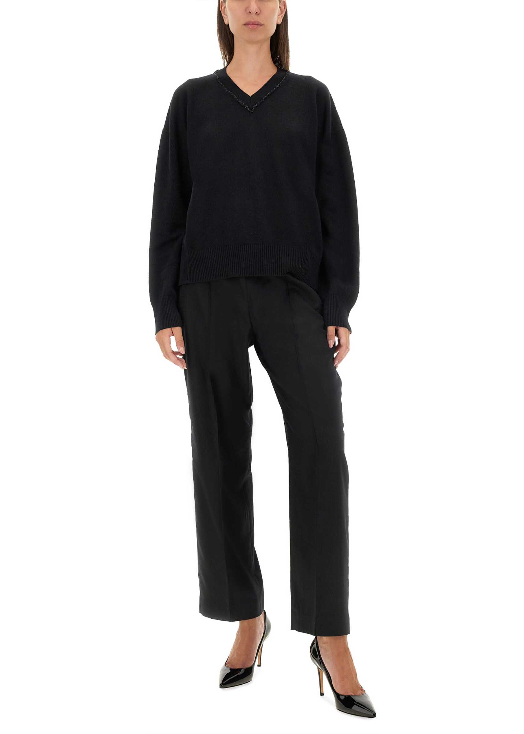 - 94% VIRGIN WOOL 5% POLYAMIDE 1% ELASTANE- MADE IN Italy- THE MODEL IS 180 CM TALL AND WEARS SIZE 40 IT