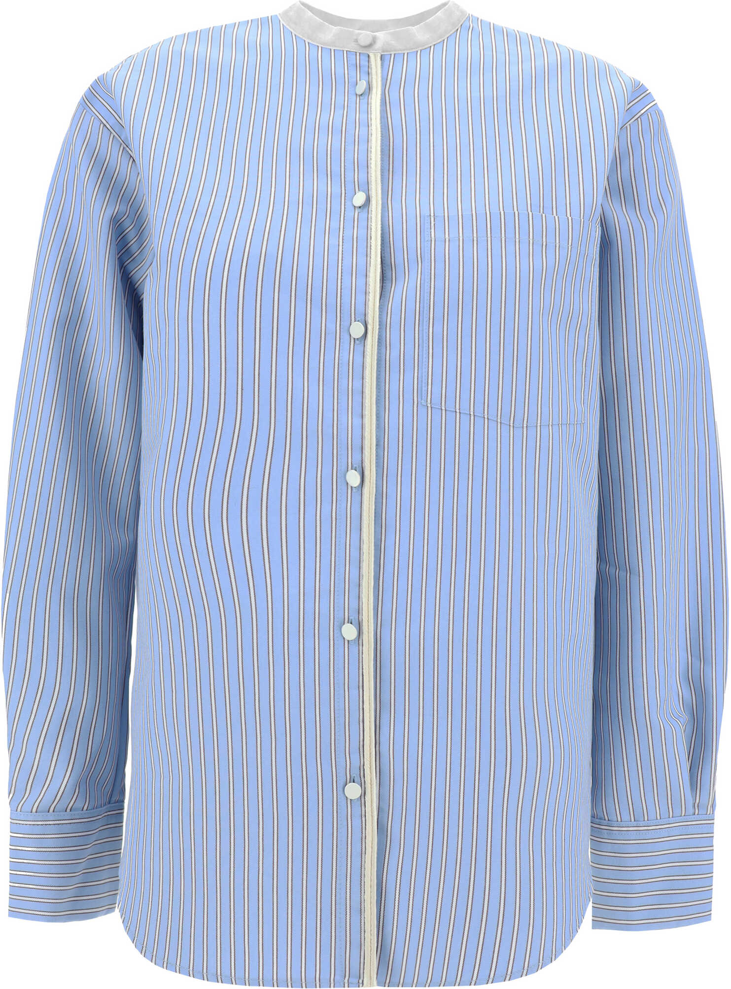 Cotton Shirt by Forte_Forte, mandarin collar, front button closure, front patch pocket, adjustable button cuffs, two-tone striped pattern, regular fit.
