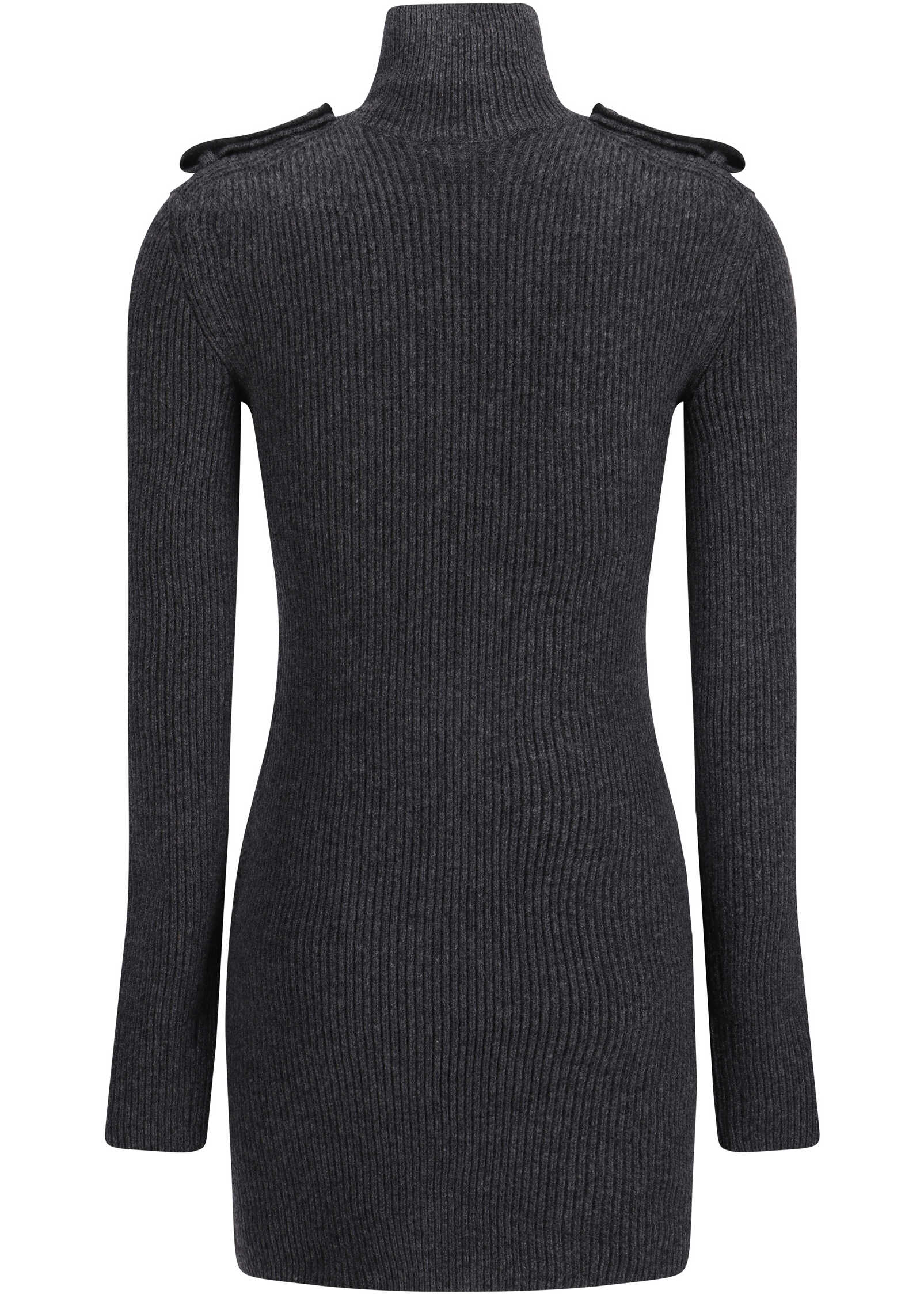 Wool Mini Dress by Alexander McQueen featuring a ribbed high neck, all-over ribbed design, button detail at shoulders, fitted waist, mélange pattern, slim fit.