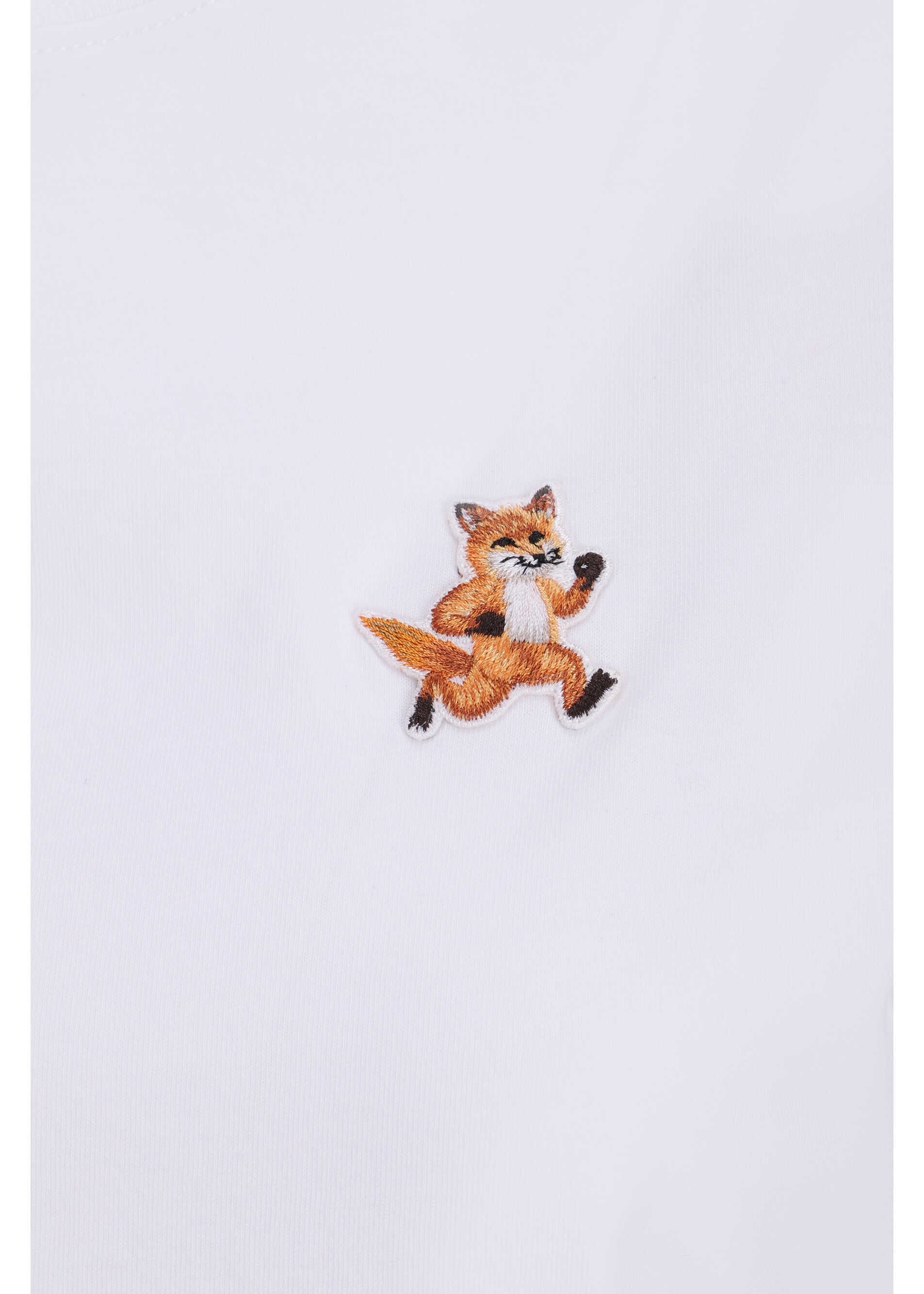 Cotton T-Shirt by Maison Kitsuné, ribbed crew neck, iconic brand logo embroidered on front, monochrome pattern, regular fit.
