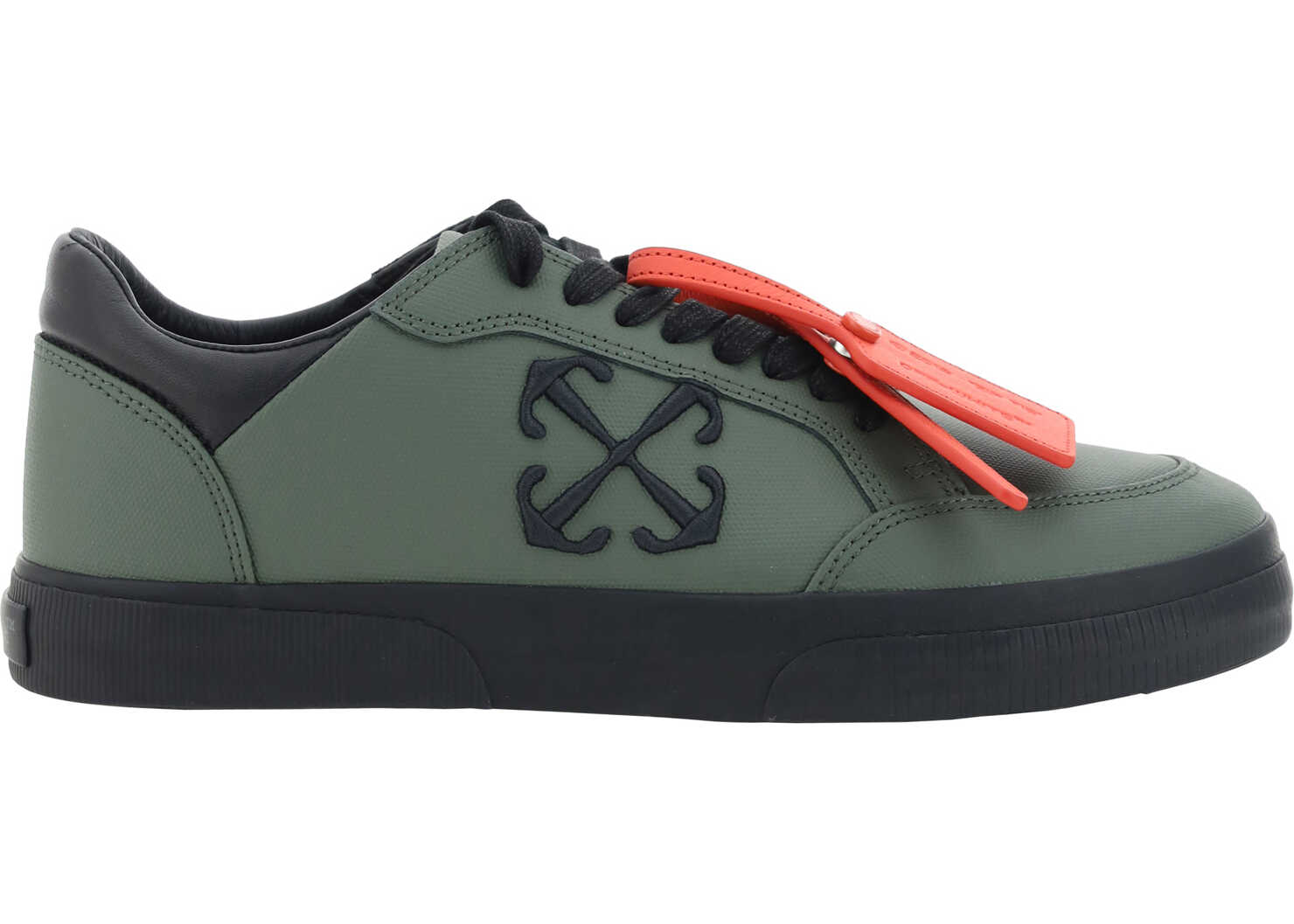 Leather New Low Vulcanized Sneakers by Off-White, round toe, iconic brand logo embroidered on side panel, flat sole, front lace-up closure, branded insole.