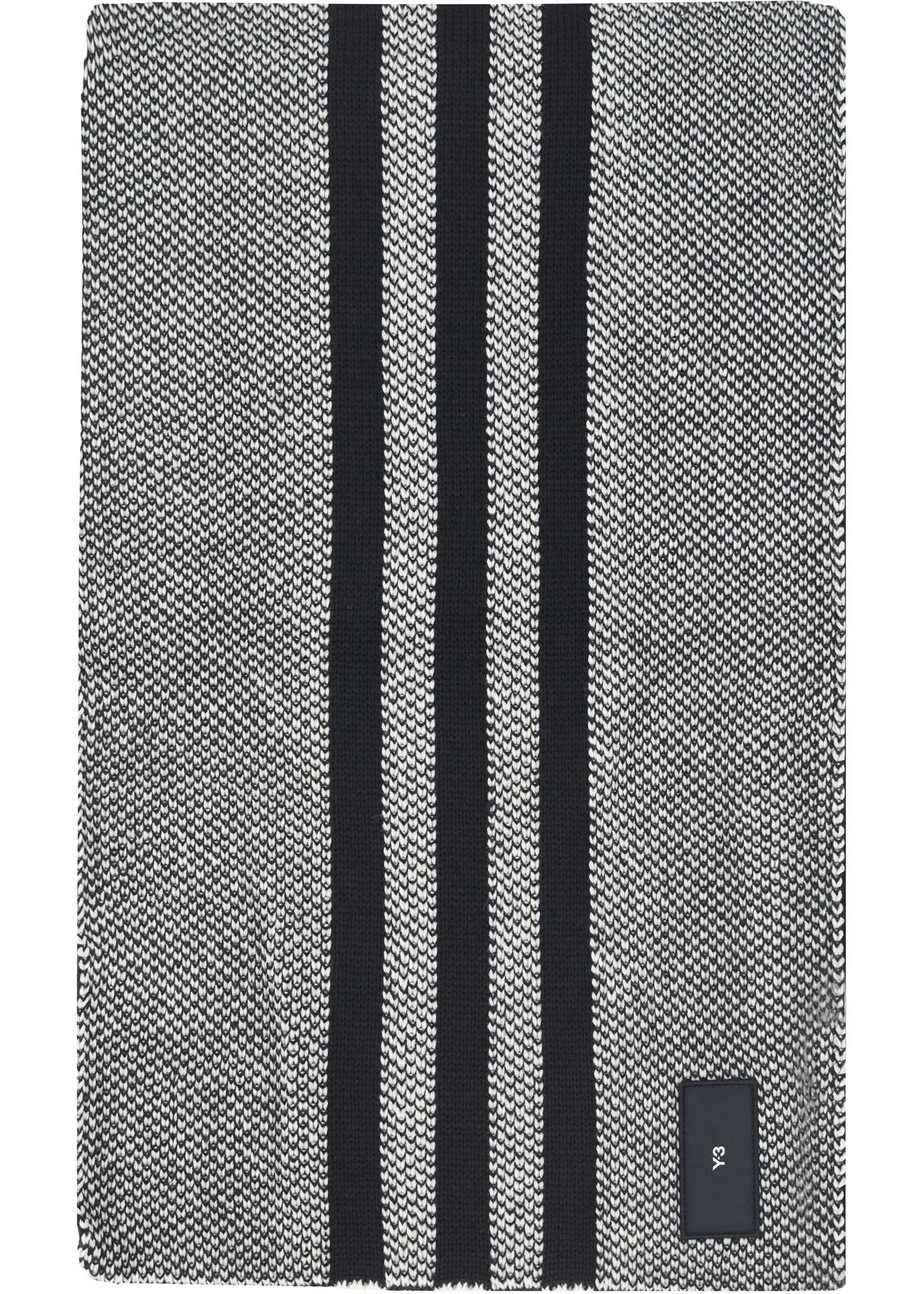 Scarf by Y-3, iconic vertical contrasting bands, iconic brand monogram patch applied on the front, double-face pattern.