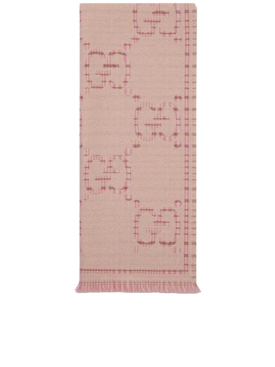 The GG wool jacquard scarf from Gucci's Cruise 24 collection combines elegance and comfort. With a classic houndstooth pattern and fringed trim, it offers a distinctive and sophisticated touch.