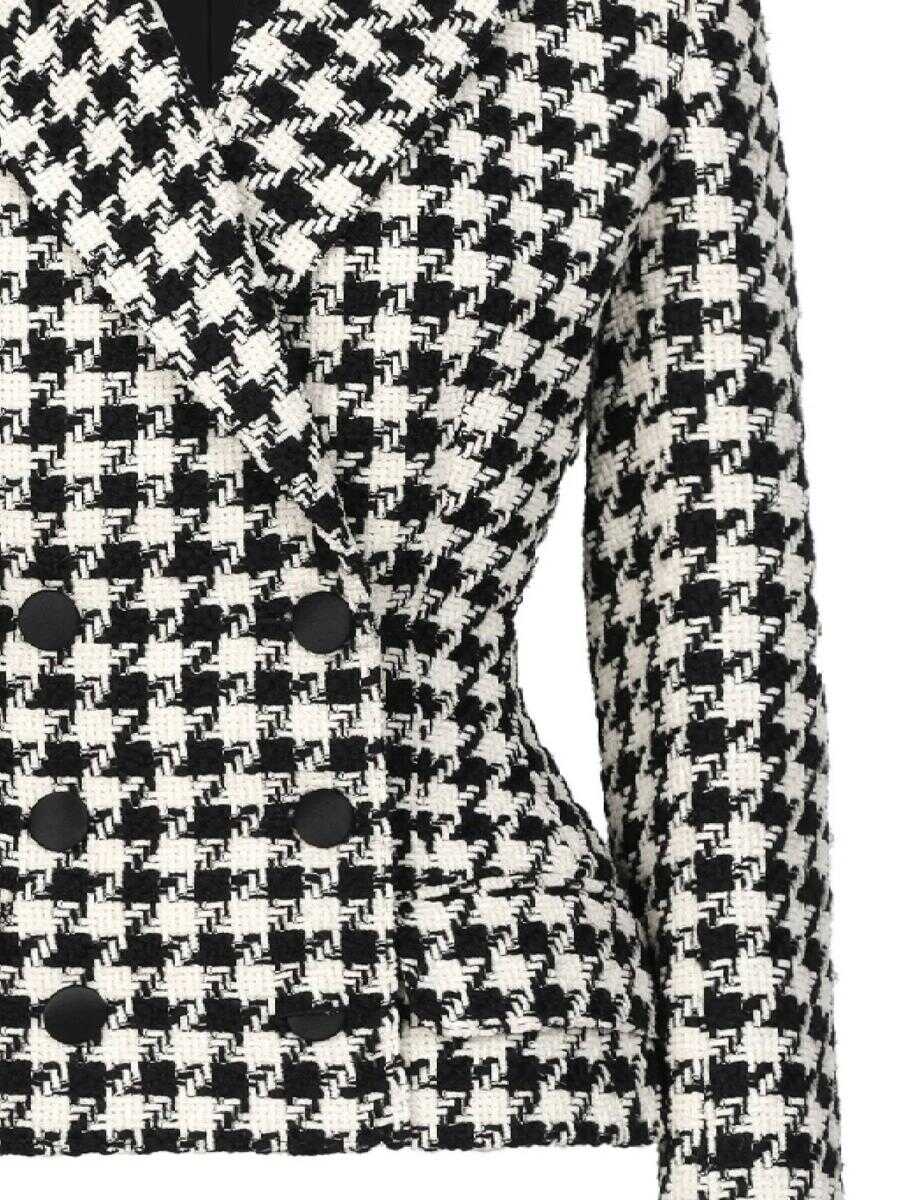 black/white silk virgin wool blend tartan check pattern double-breasted button fastening notched lapels long sleeves straight hem Length: 60.0 Centimetres SLEEVE LENGTH: 62.0 Centimetres WAIST: 82.0 Centimetres