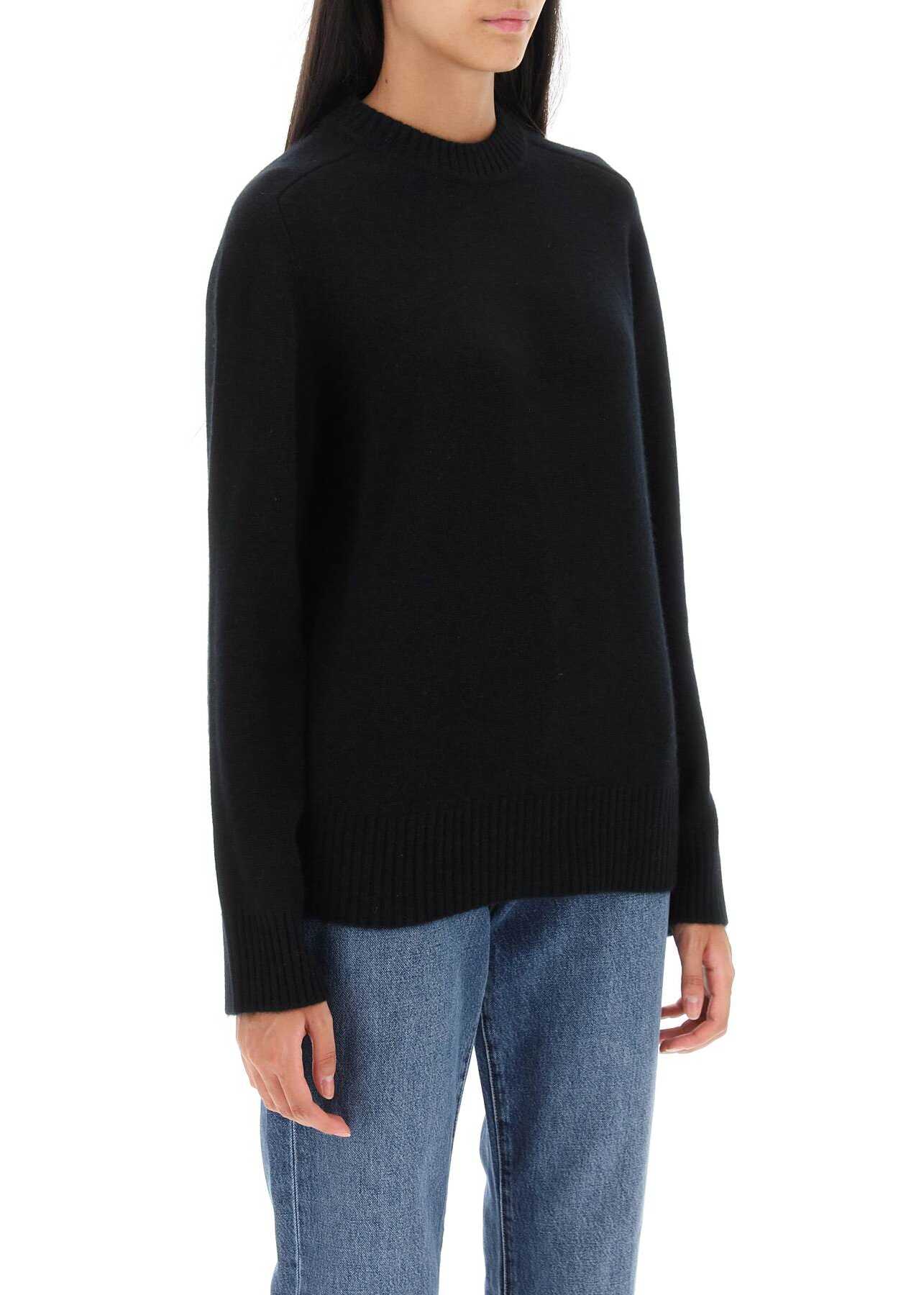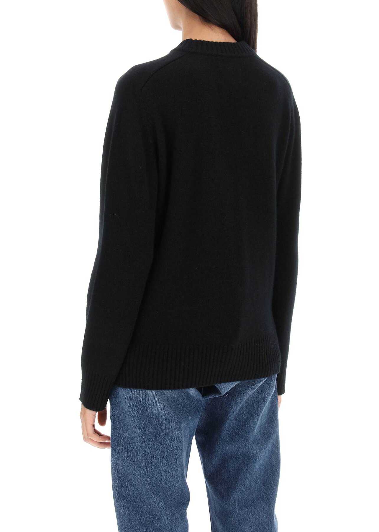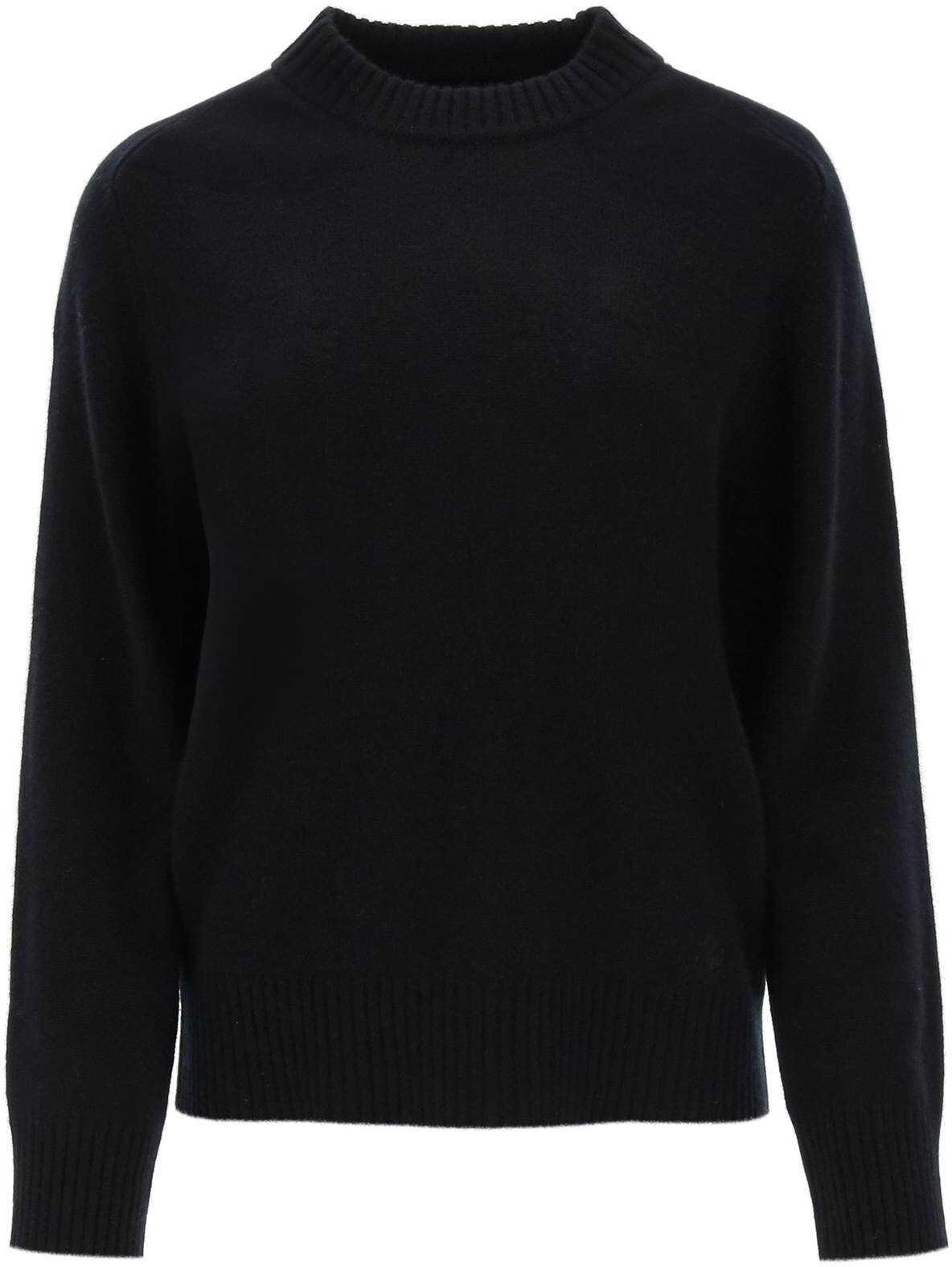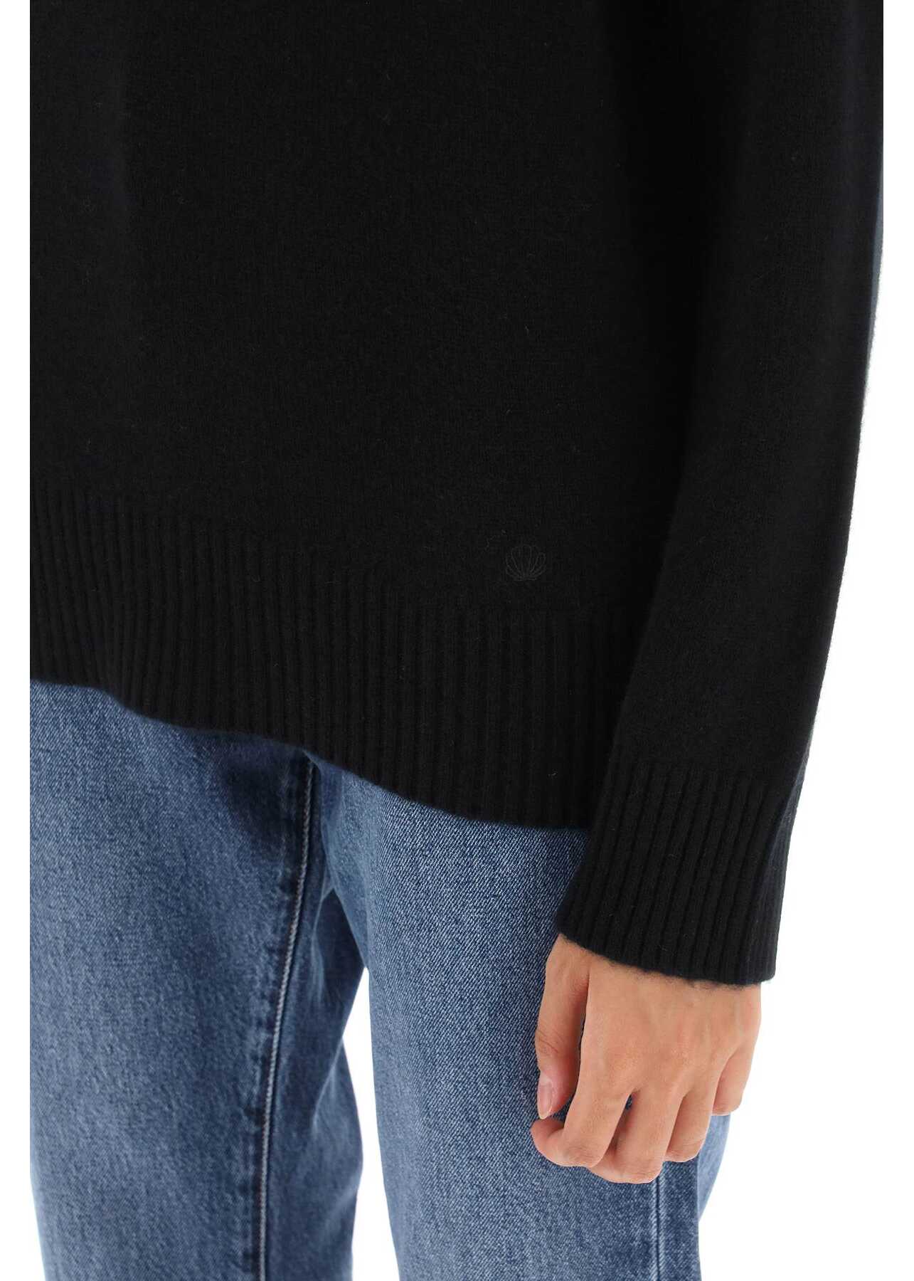 LouLou Studio sweater crafted in soft pure cashmere yarn. It features ribbed crew neck, cuffs and hem. Enriched by signature LouLou Studio seashell tonal embroidery on the front. Relaxed fit enhanced by saddle sleeves. The model is 177 cm tall and wears size XS.