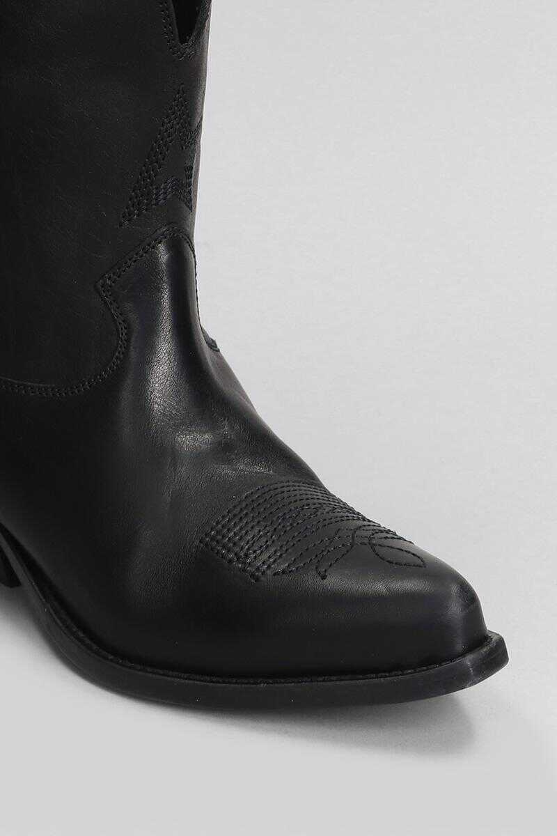 Wish Star texan Ankle boots in black leather, pointed toe, slip on, side pulltab, embroidered detail, banana heel, leather sole, heel 4,5, 100% leather, Made in Italy
