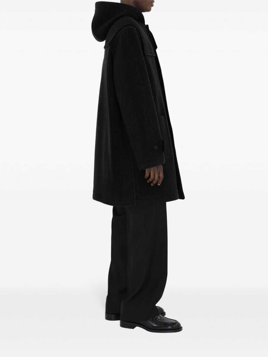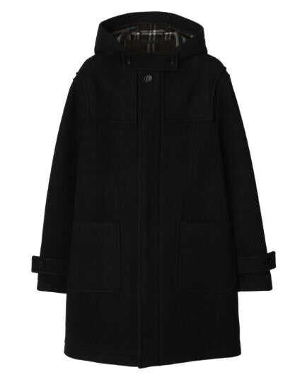 black wool classic hood concealed front fastening long sleeves belted cuffs two side patch pockets above-knee length straight hem checked lining We've partnered with Good On You — an independent agency that rates how brands perform in relation to their impact on the planet, people and animals, with a multi-criteria rating simplified to a five points scale. In order to be awarded our conscious label, larger brands need to score a minimum of four out of five ('Good'), while smaller brands must score at least three out of five ('It's A Start'). This item comes from a brand rated three out of five ('It's A Start') by Good on You at the time it was added on FARFETCH. Please note, this is a brand-level rating and does not guarantee that this product is made with conscious materials. Learn more about what makes a product Conscious on our Conscious Criteria page