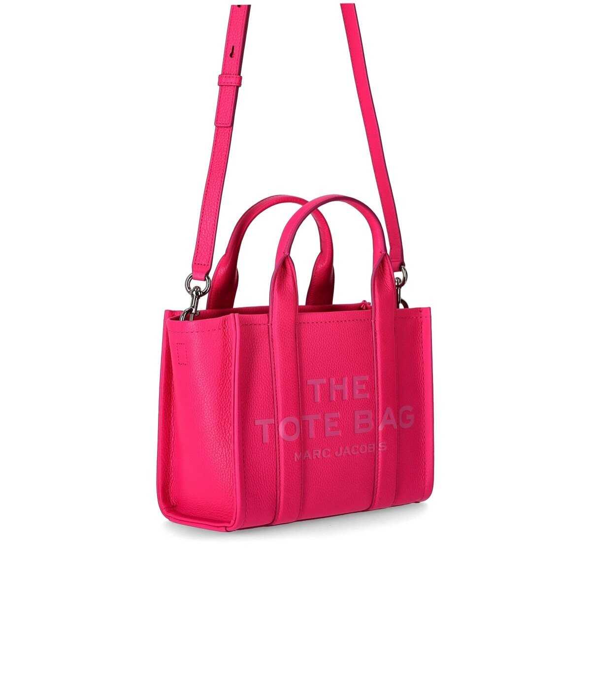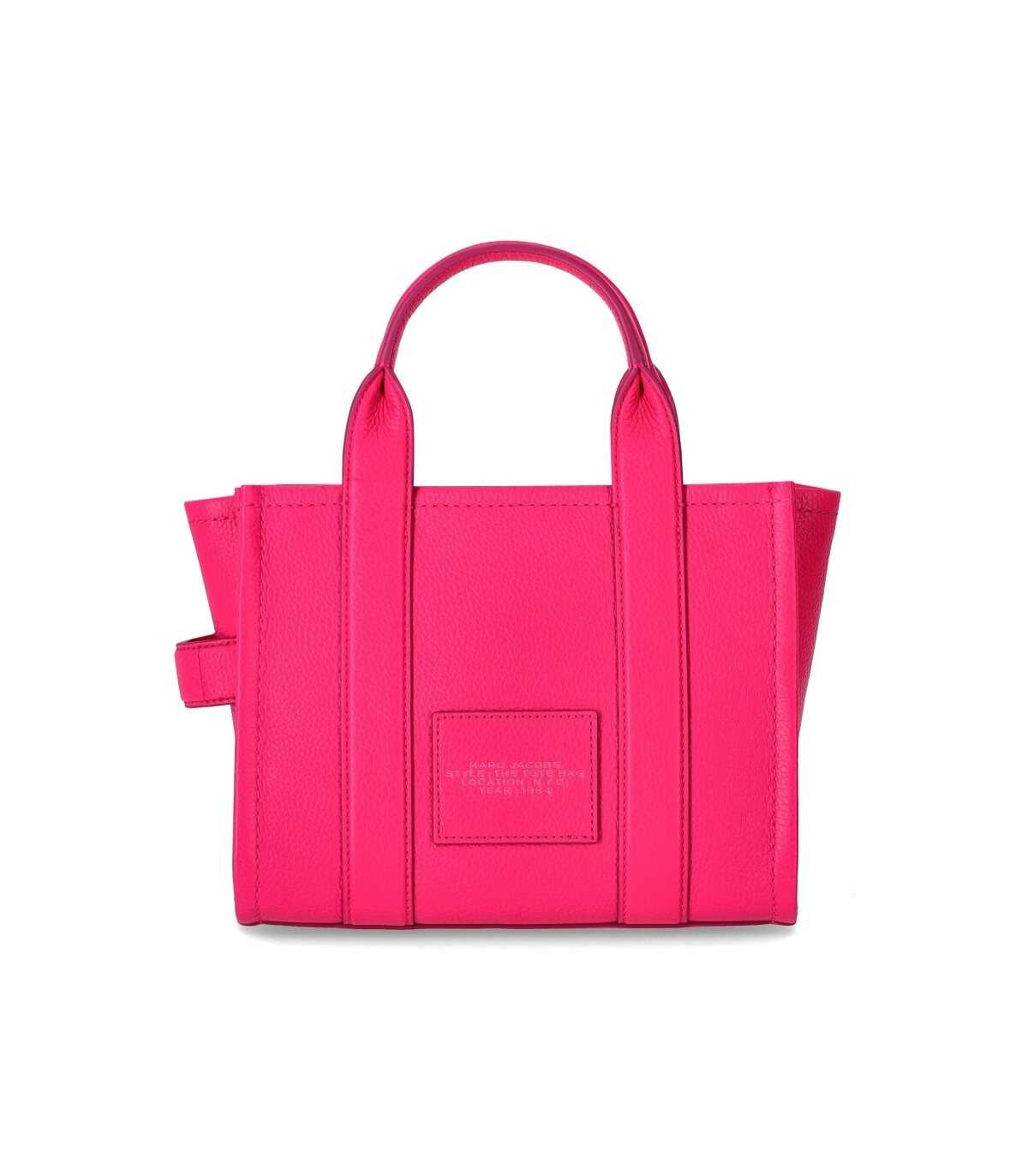 The Leather Small Tote handbag by Marc Jacobs made of fuchsia pebbled leather. Front logo, gold hardware, interior with a slip pocket and zip closure. Adjustable and removable shoulder strap. Measurements 26x13x21 cm.