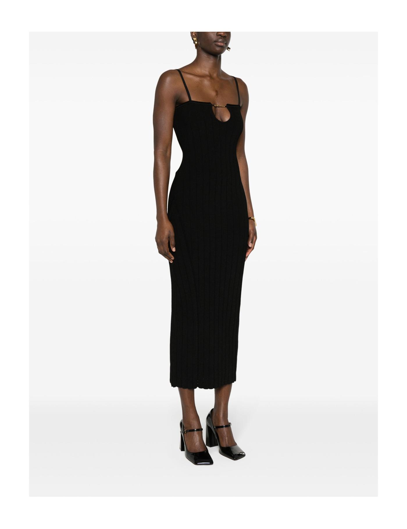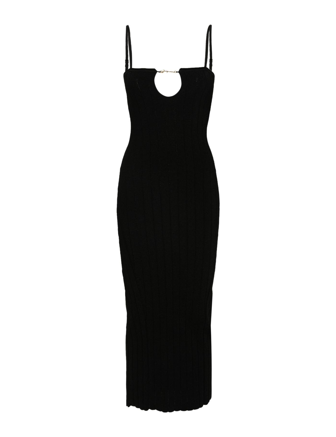 A brand icon, Jacquemus' logo plaque embellishes the front of this black Sierra dress, accentuating the plunging neckline. It's crafted in Italy from finely ribbed fabric, boasting a languid midi silhouette.