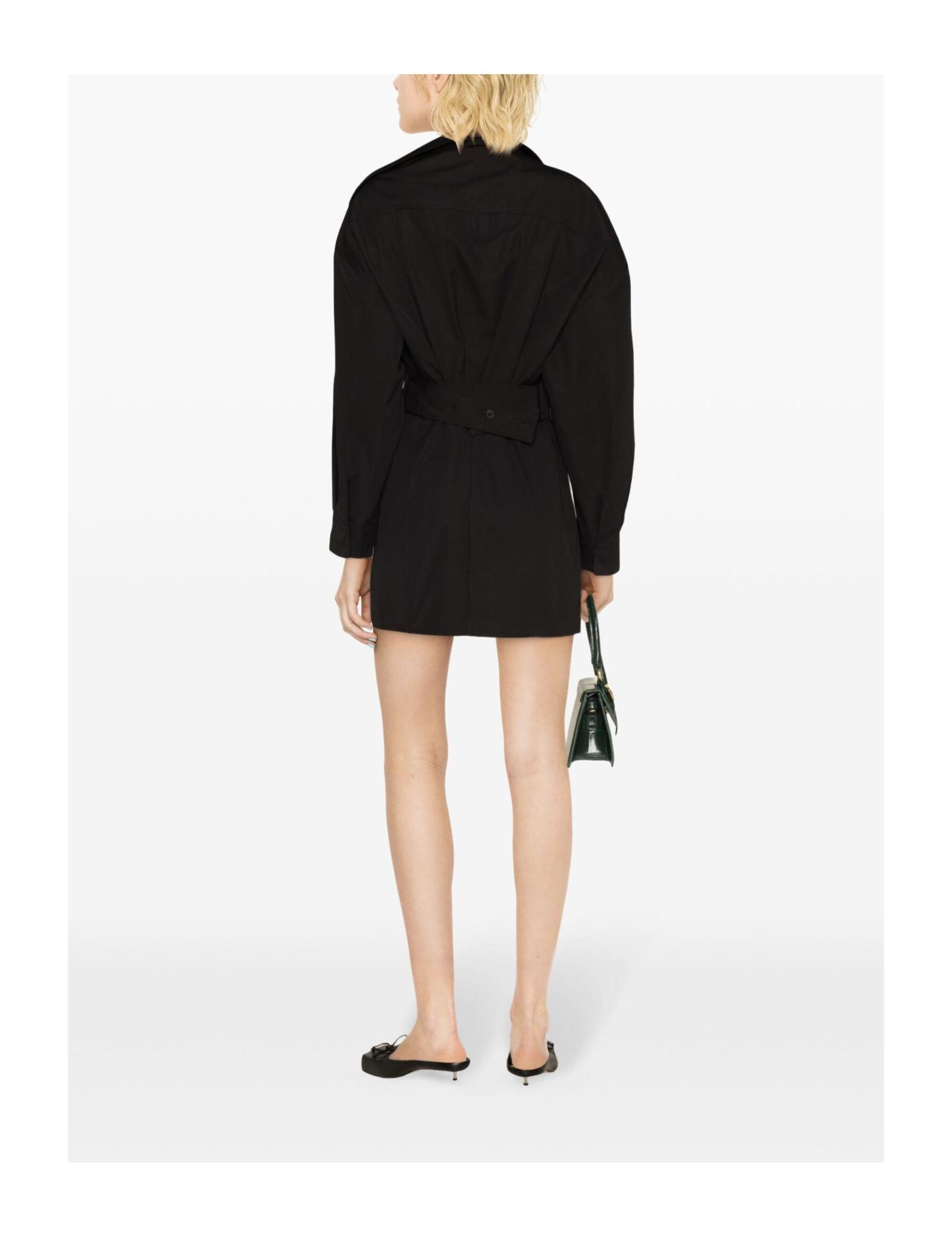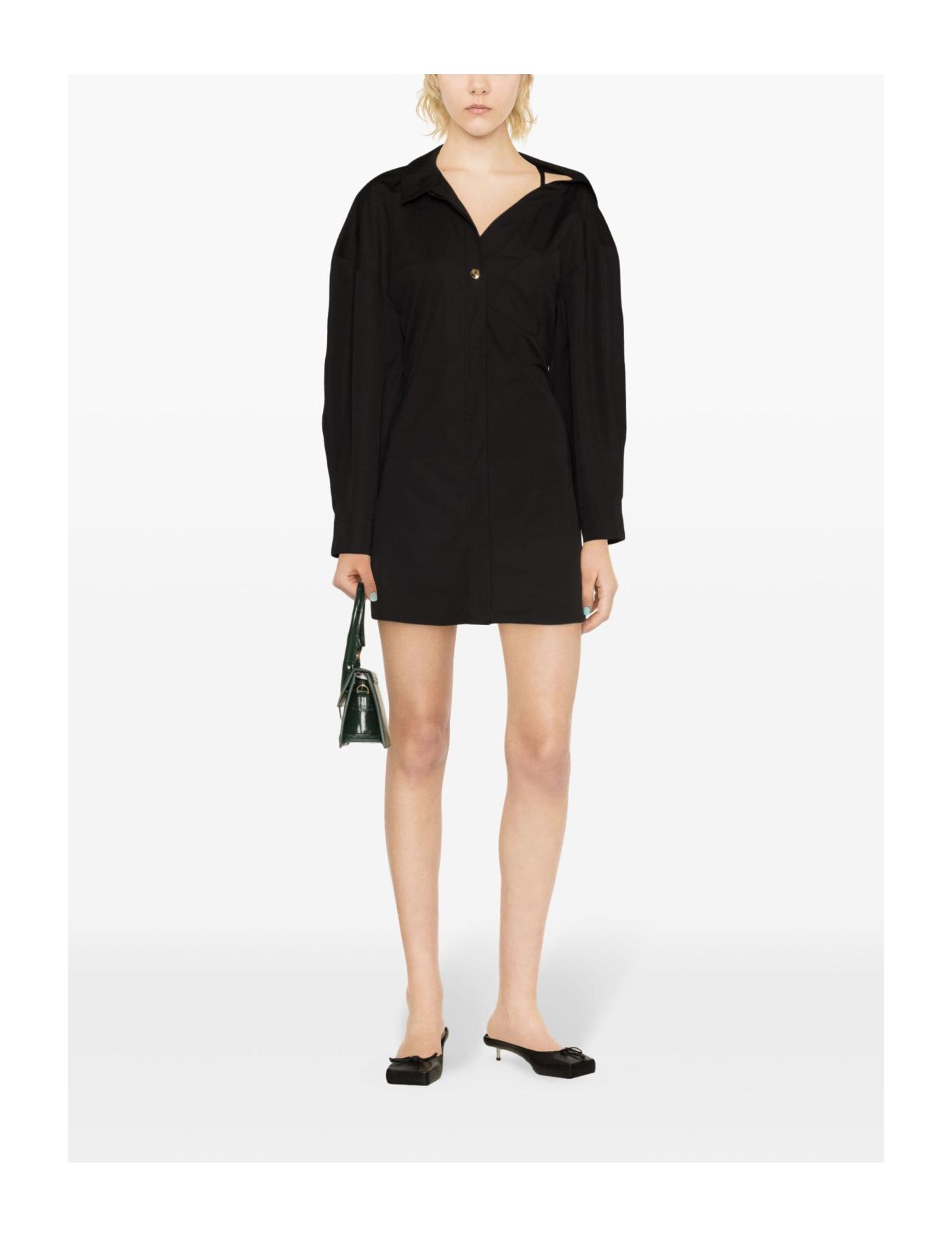 Jacquemus' minidress shows the brand's minimal and contemporary style with an all-black cotton construction. Its is defined by its relaxed fit and asymmetric neckline.