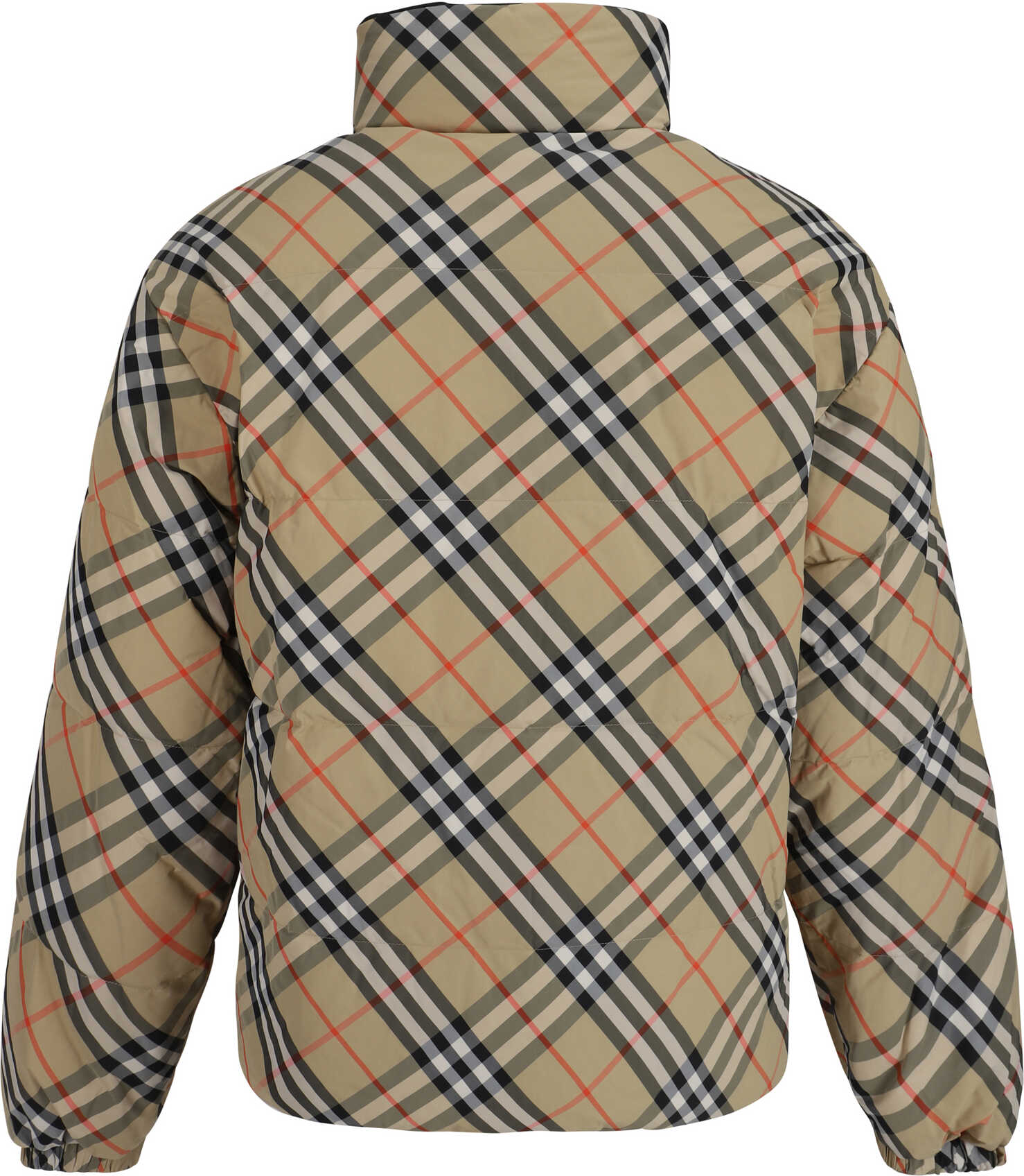Reversible Down Jacket by Burberry, high collar, front closure by double-slider zipper, two side zippered welt pockets, elasticized cuffs, all-over quilted and padded design, monochrome double-face pattern and the brand's iconic Check Archive, regular fit.