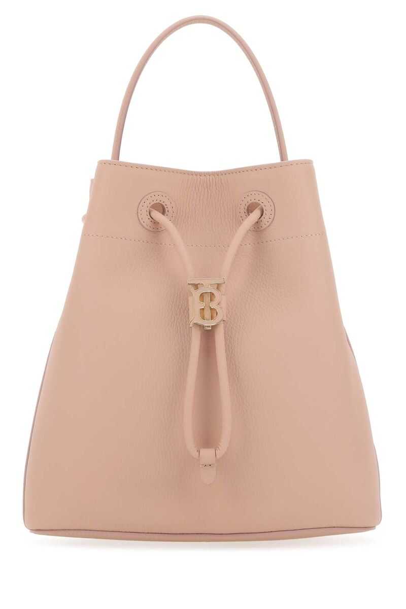 Pink leather small TB bucket bag Width: 26 cm Height: 26 cm Depth: 15 cm Handle height: 13 cm Min shoulder strap length: 48 cm Max shoulder strap length: 54 cm